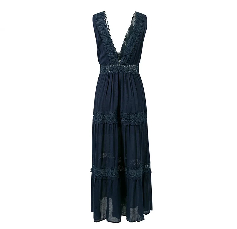 Женское кружевное платье с открытой спиной, элегантное белое ажурное длинное платье-макси с глубоким V-образным вырезом, размеры S, M, L, Xl, на лето