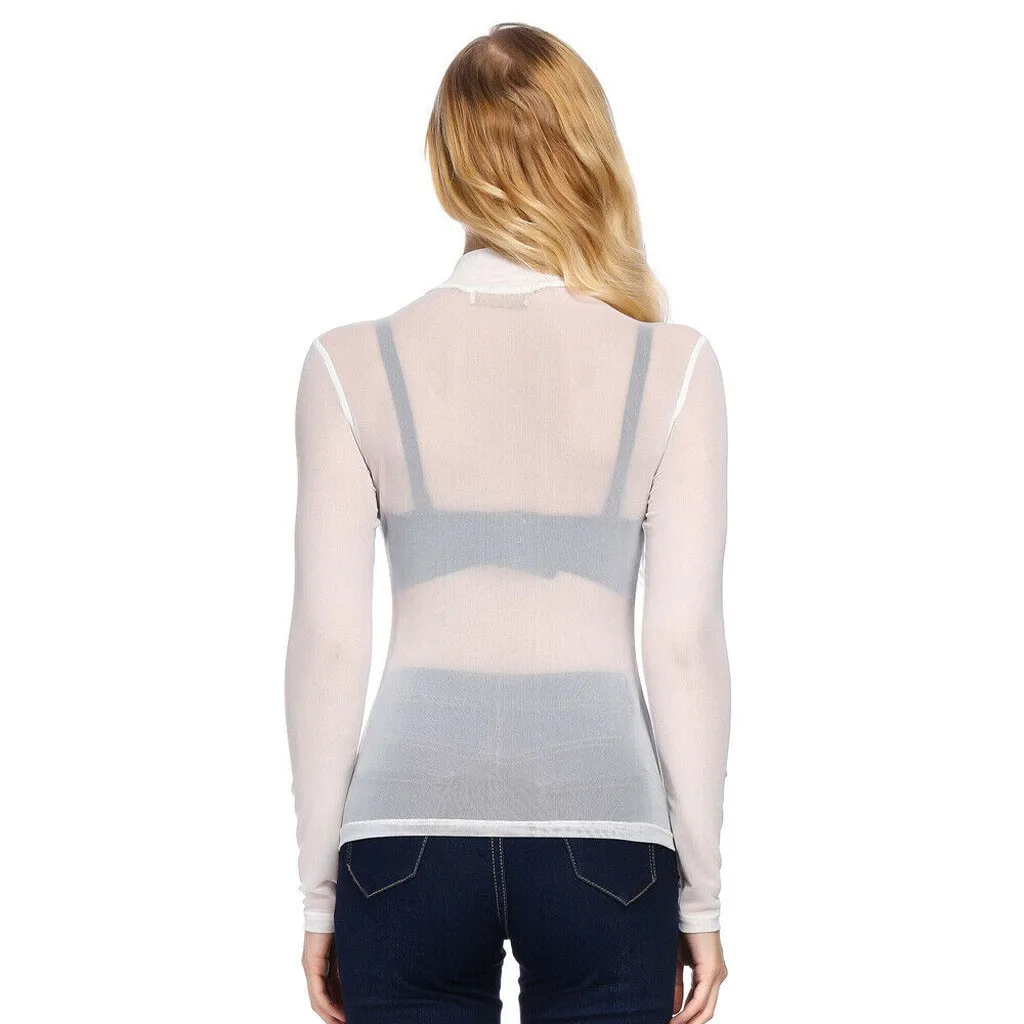 Женская футболка, водолазка, перспективная сетчатая рубашка, длинный рукав, прозрачный топ, женская сексуальная прозрачная рубашка, женская одежда % F07