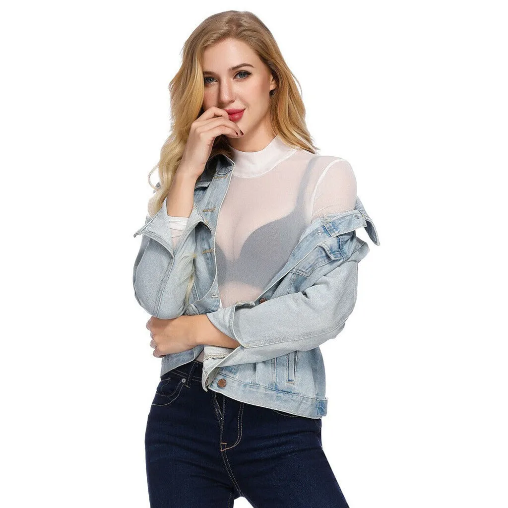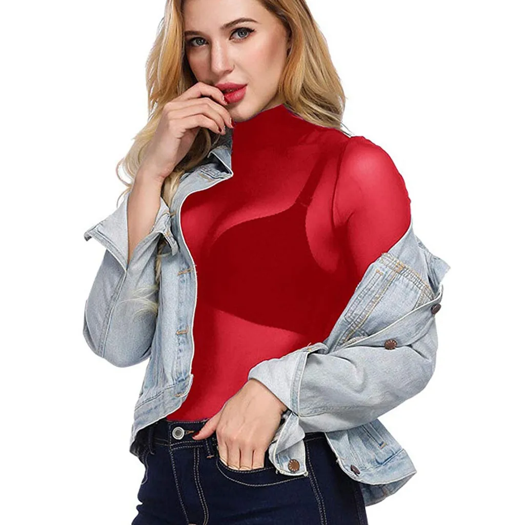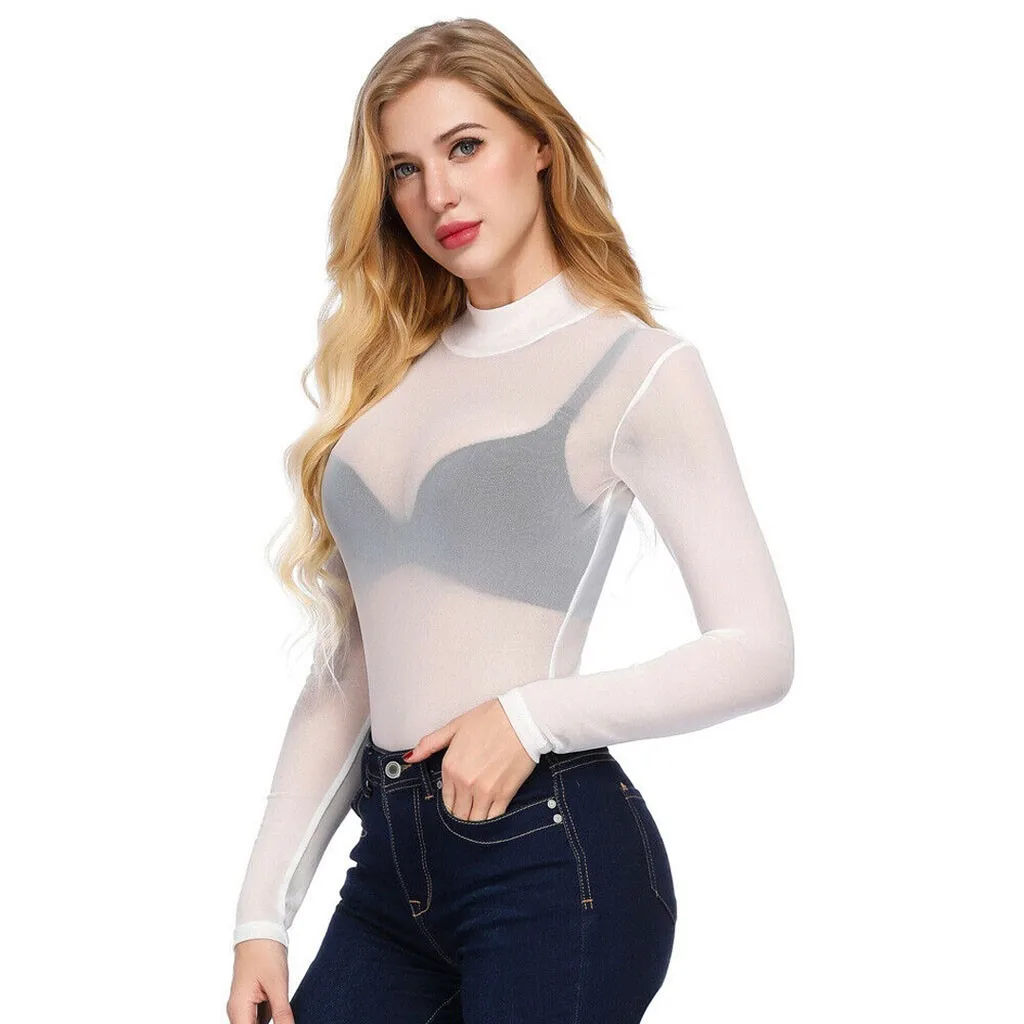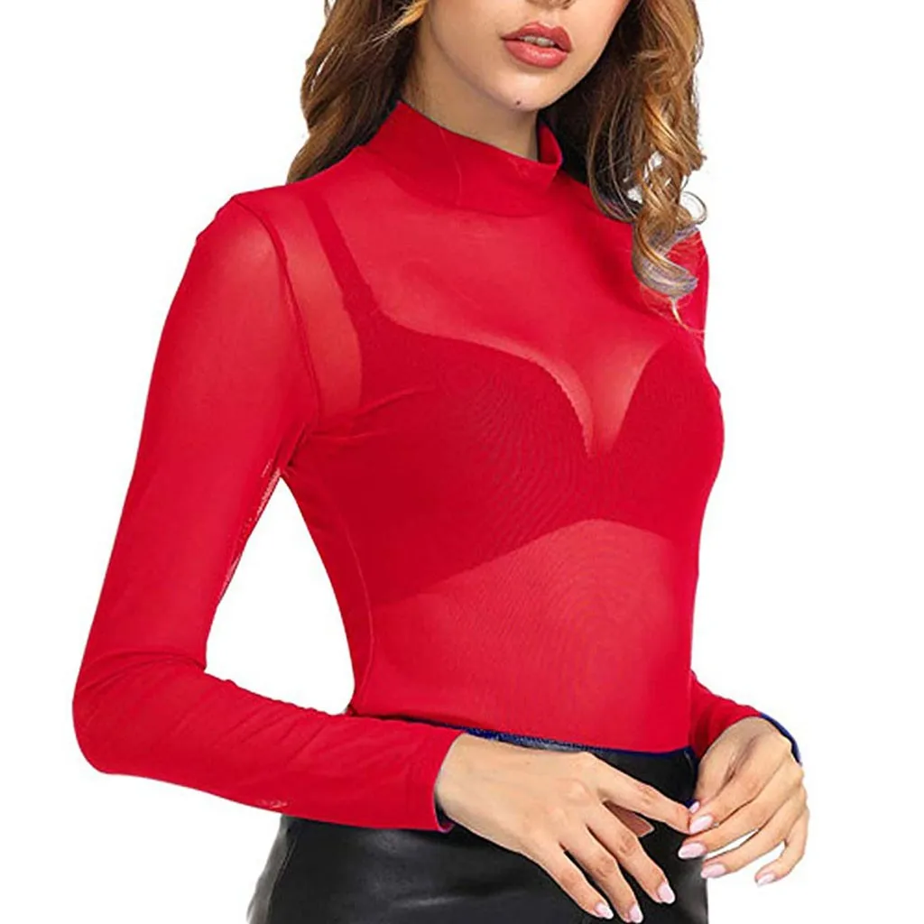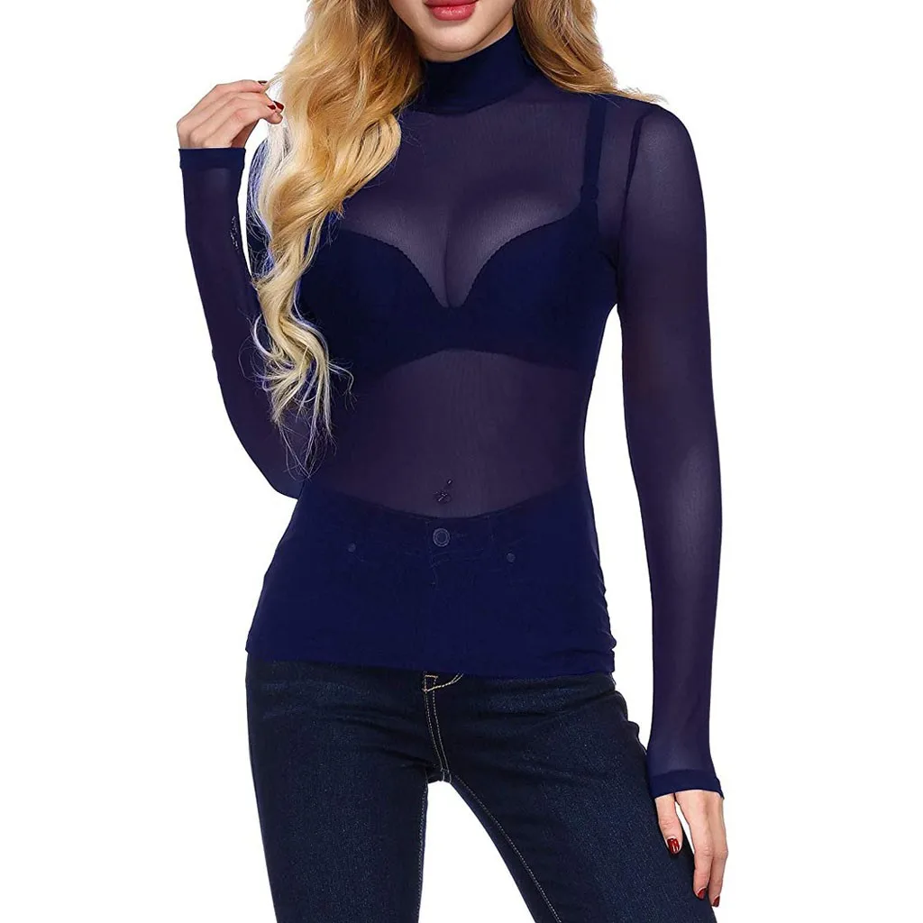 Женская футболка, водолазка, перспективная сетчатая рубашка, длинный рукав, прозрачный топ, женская сексуальная прозрачная рубашка, женская одежда