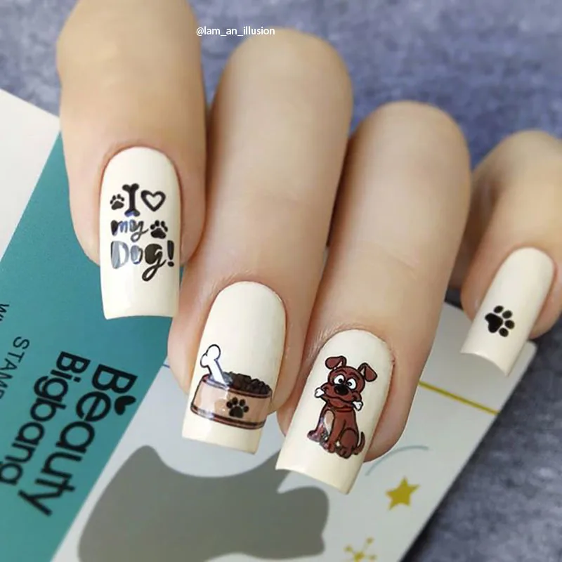 Пластины для стемпинга ногтей, прямоугольные, с изображением собаки...