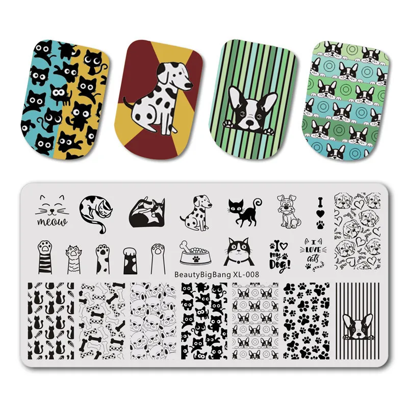 Красота BigBang штамповки ногтей пластины Симпатичный кот собака изображение из нержавеющей стали ногтей штамп шаблоны дизайна ногтей форма BBB XL-008