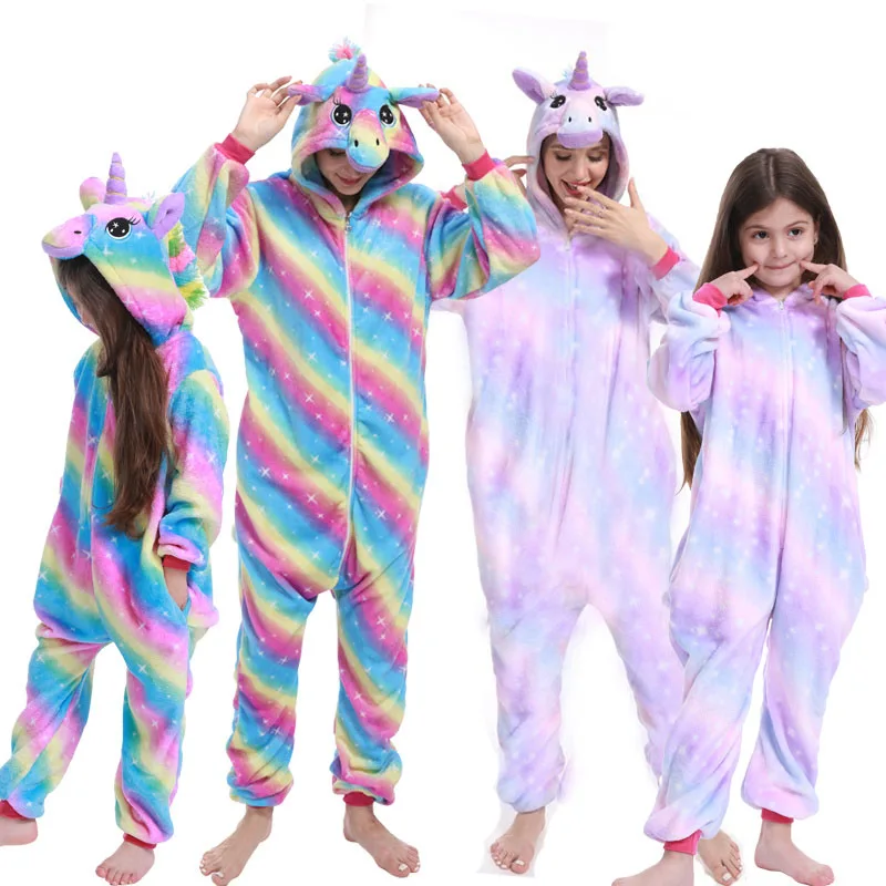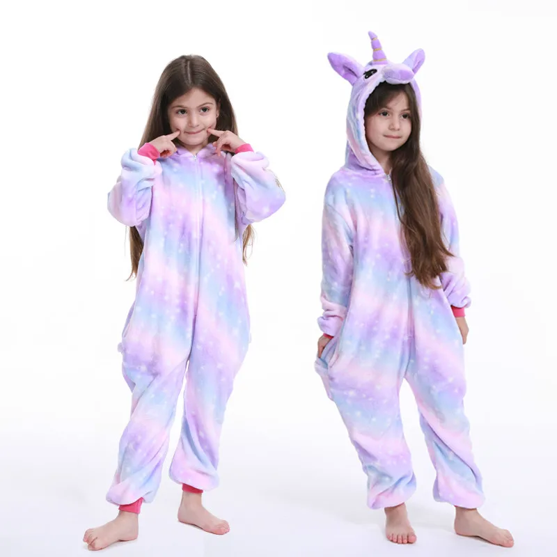 Пижама-Кигуруми для мальчиков и девочек, фланелевая, с единорогом