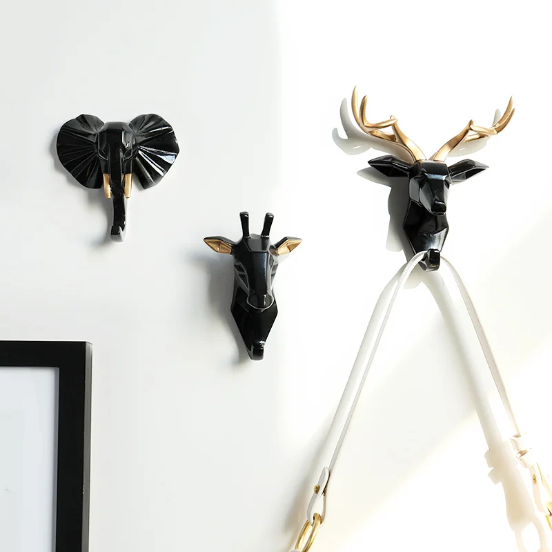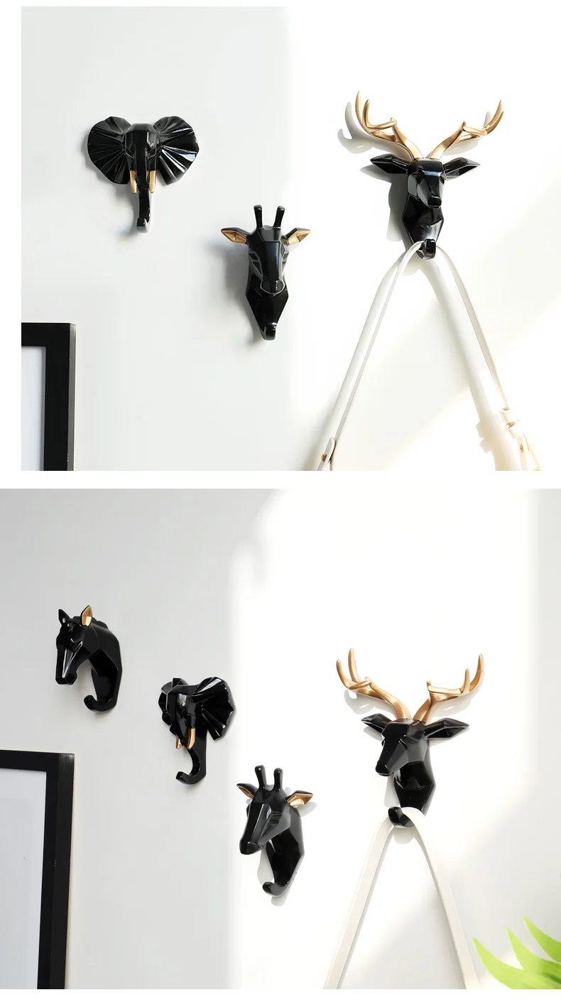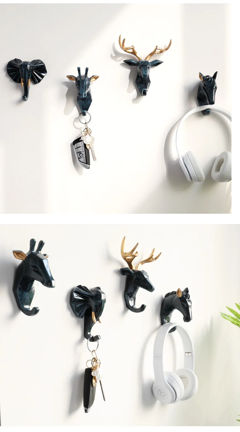 Полимерная наклейка в виде головы животных, крючок, Настенная декоративная вешалка для одежды для двери, кухни, сумки, пальто, крючки, ключница, Настенный декор