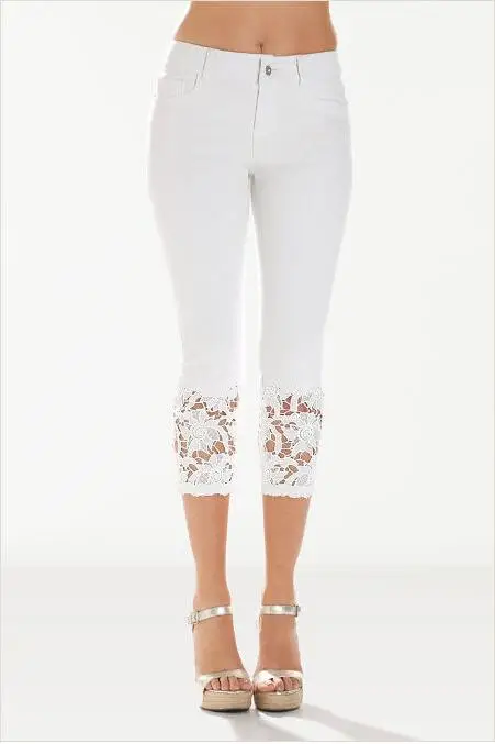 Кружевные женские джинсовые Капри, джинсы, женские джинсы с высокой...