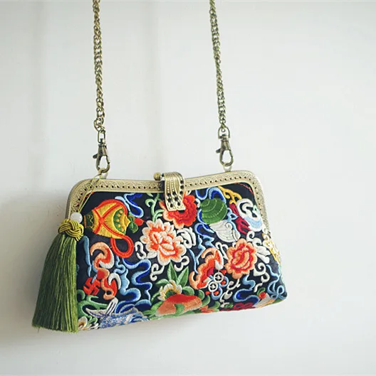 Сумка-Кроссбоди с красной цветочной вышивкой angelatacy, винтажная сумка через плечо в металлической оправе, ручная работа, 2020