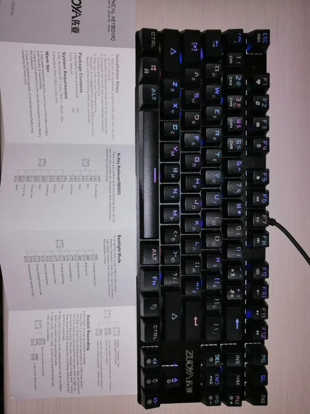 Очень хорошая клавиатура, качество на все деньги (1800 руб). Много режимов подсветки, очень удобно. Довольно громкая ( красные свичи), но это решается силиконовыми колечками. Дошла до Москвы,э за пару дней, можно было и быстрее, но я сам отложил доставку до момента пока буду дома. В комплекте инструкция (здесь она вам действительно понадобится) и наклейки ру. Только вот вопрос зачем они нужны, если есть гравировка на клавишах. По размерам действительно не большая, качество сборки хорошее. верхняя часть алюминиевая, низ пластик, есть высокие ножки. Если хотите попробовать свою первую механическую клавиатуру, очень советую к покупке.