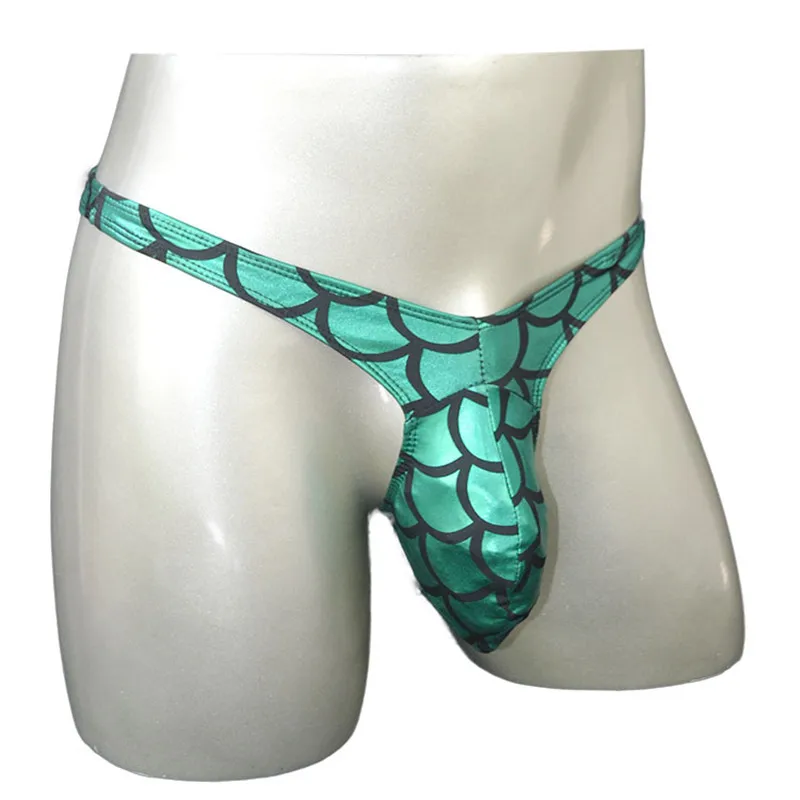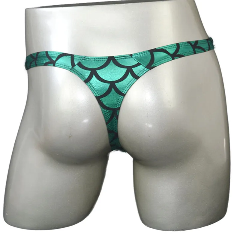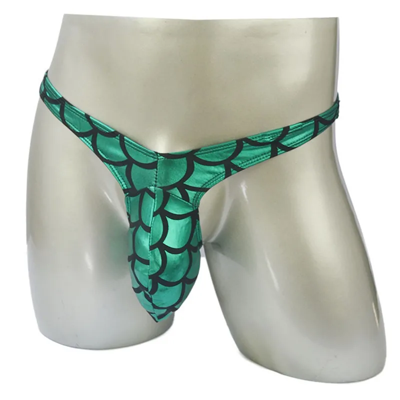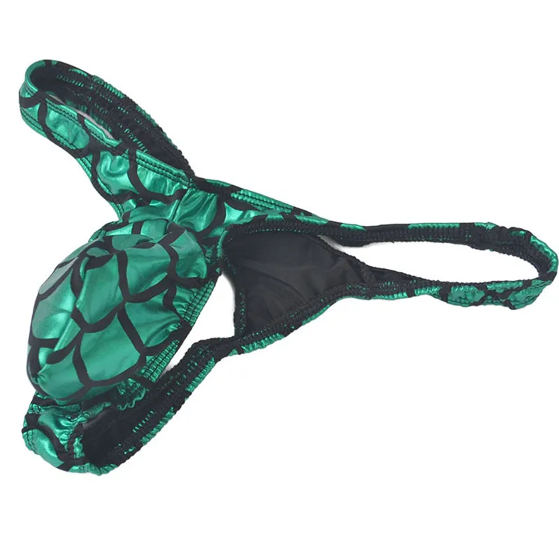 Мужские трусы танга с принтом рыбьей кожи, зеленые стринги, бикини, стринги, сексуальное нижнее белье для мужчин, гей-трусы