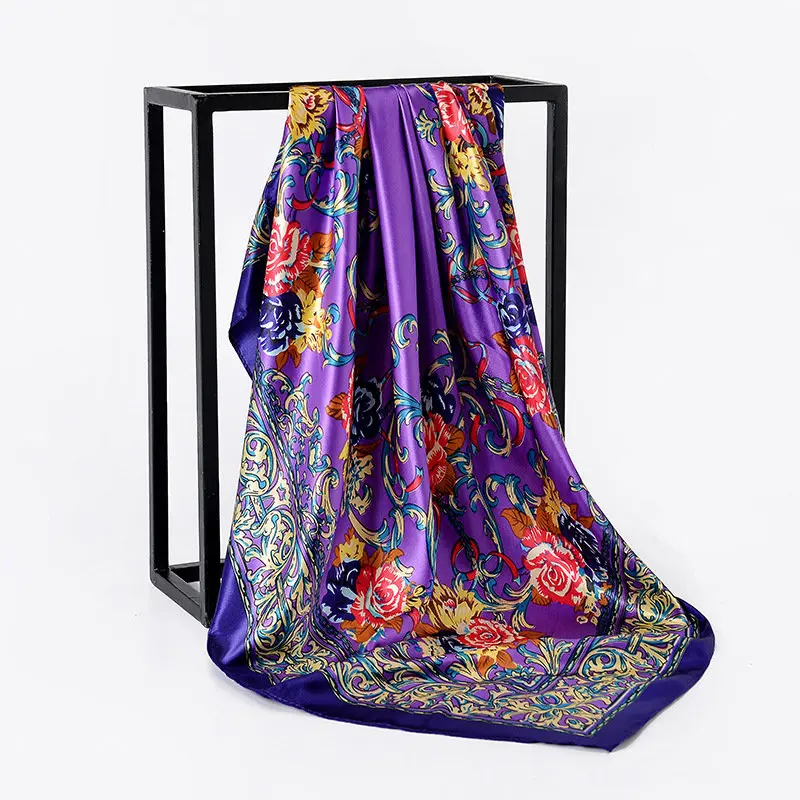 Шелковые шарфы весна-лето, женский большой квадратный шарф с принтом, солнцезащитные Шали, женский модный маленький шейный пляжный хиджаб, бандана