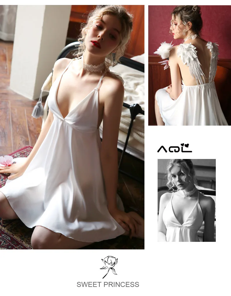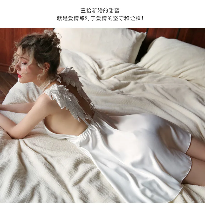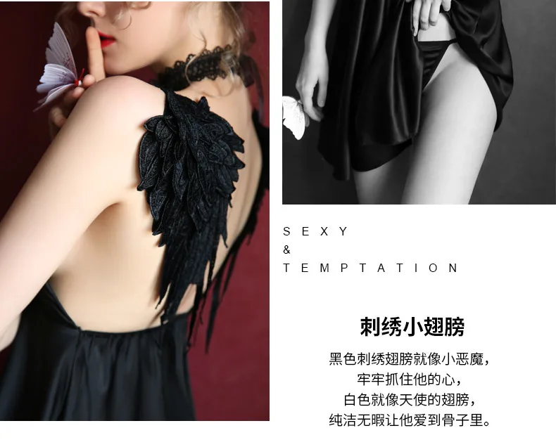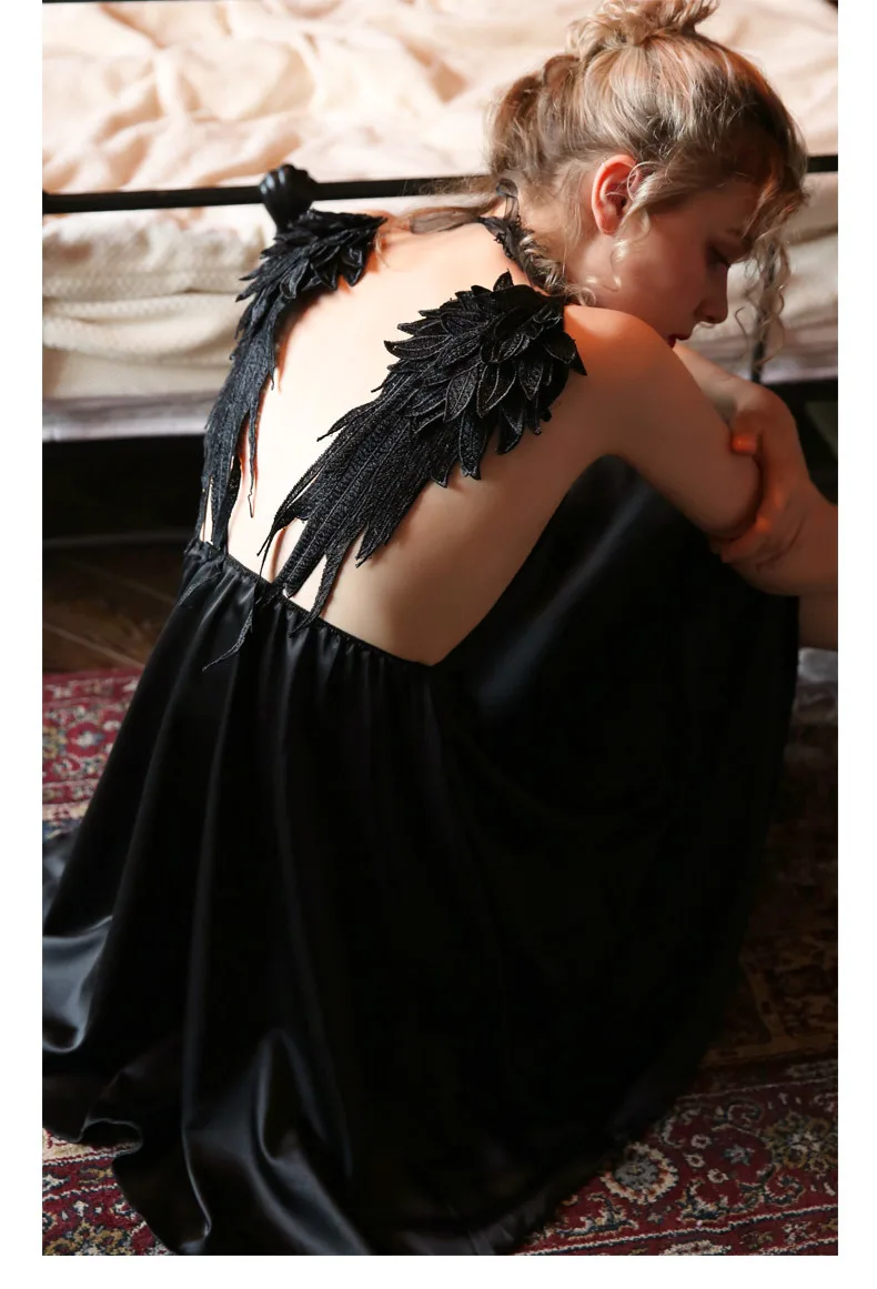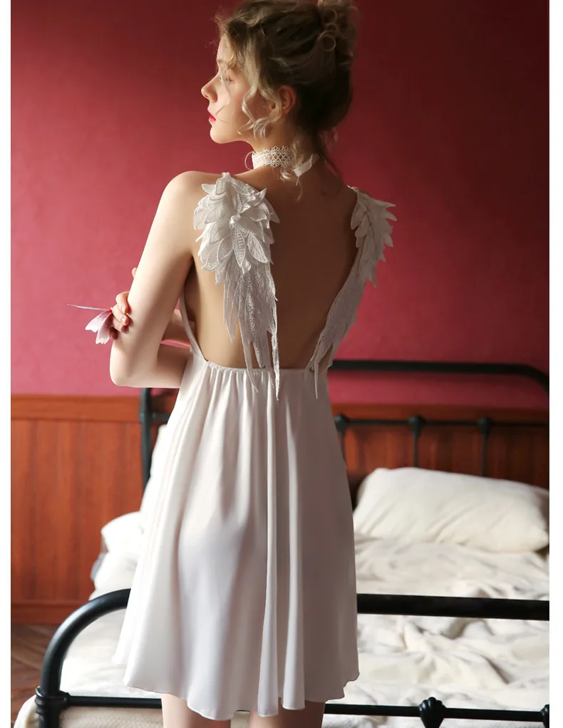 Ночная сорочка женская шелковая, пикантная ночная рубашка с крыльями ангела, ночная сорочка, одежда для сна, домашняя платье Ночная рубашка, лето