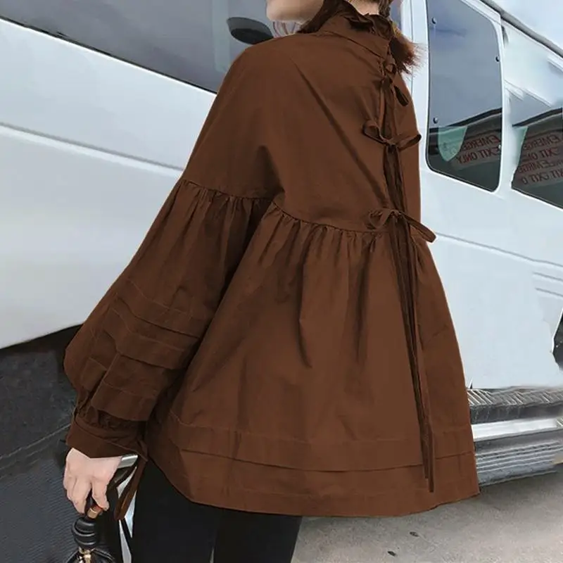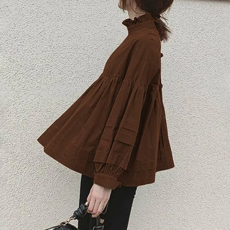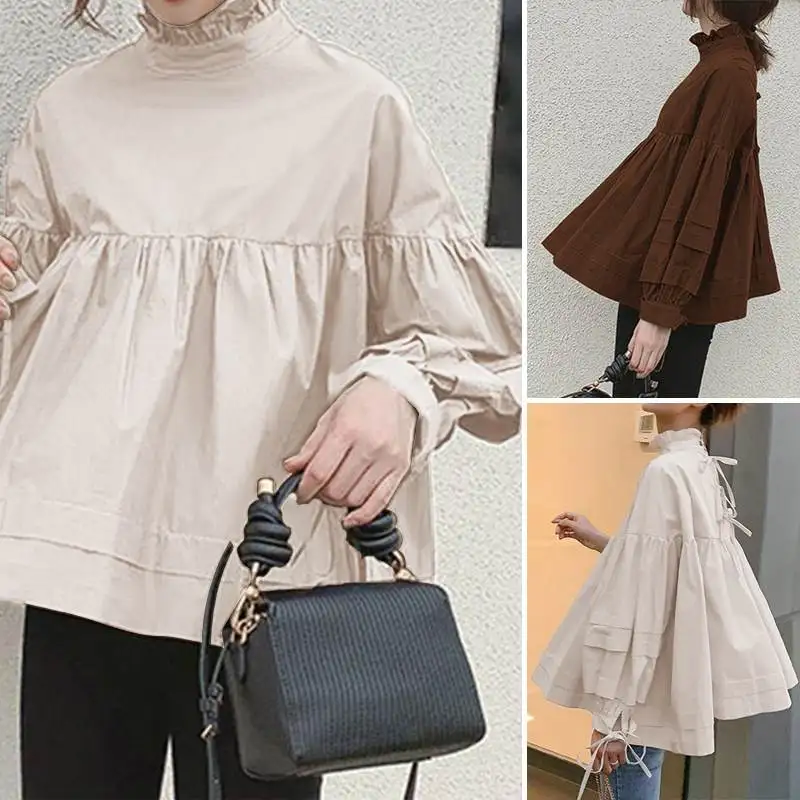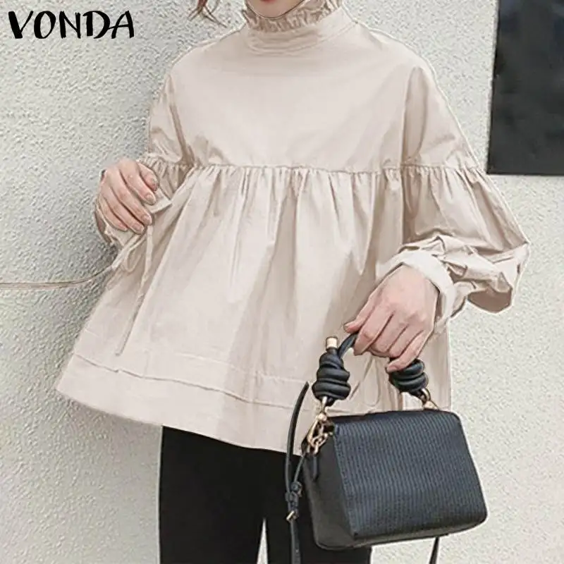 Туника Женская Офисная рубашка VONDA 2021 Осенние Топы с длинным рукавом Женские винтажные однотонные рубашки богемные блузы