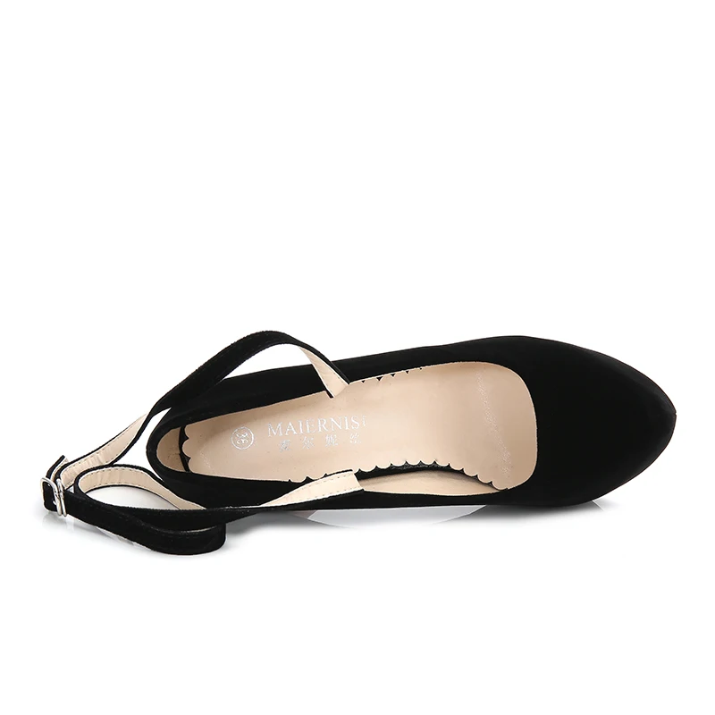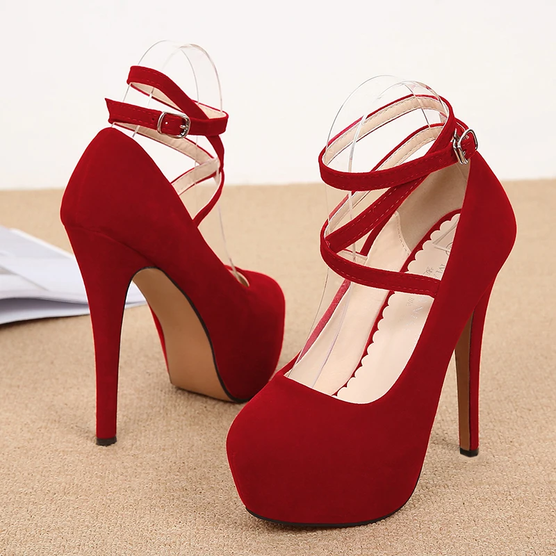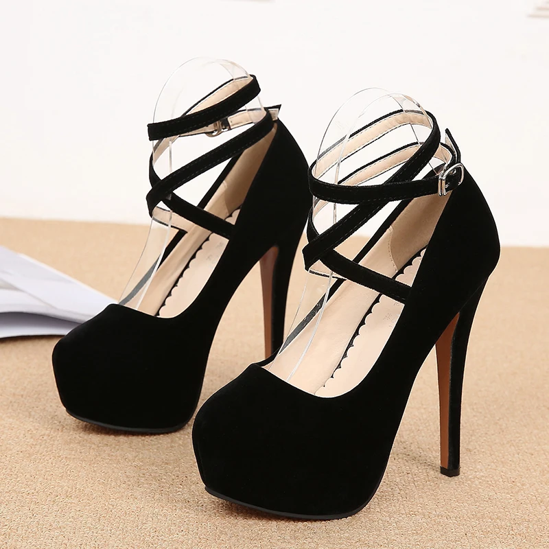 Туфли на платформе и высоком каблуке 14 см; Женские туфли-лодочки из флока с перекрестными ремешками; Женские обувь в римском стиле на шпильке; Размер 46