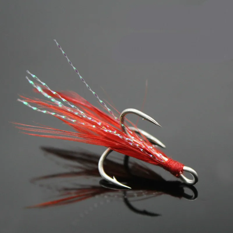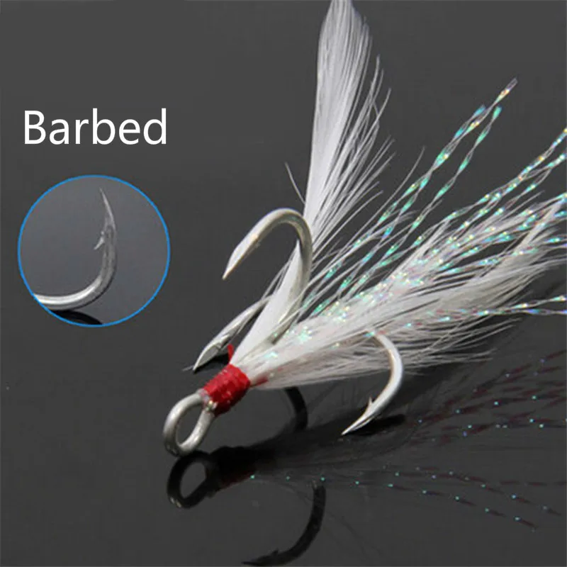 Тройные рыболовные крючки 10 шт. тройные Крючки с перьевыми снасти рыболовные крючки из прочной углеродистой стали рыболовные крючки с зазубринами рыболовные аксессуары