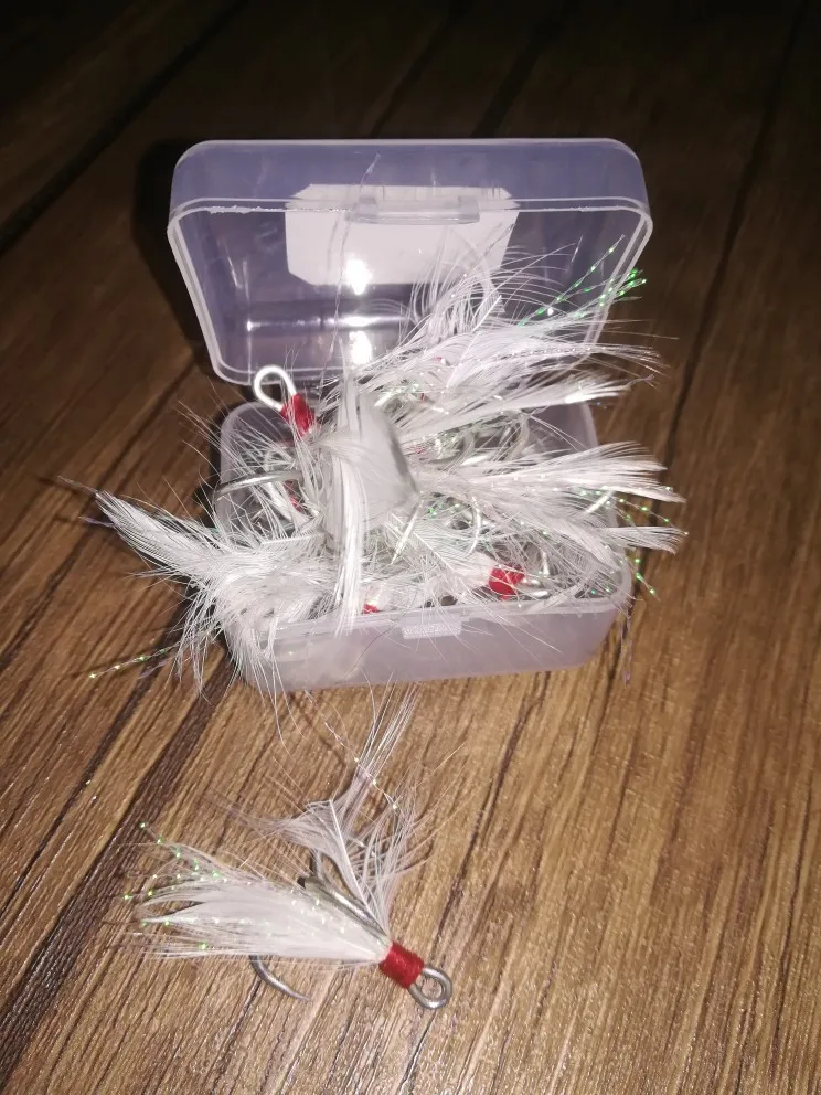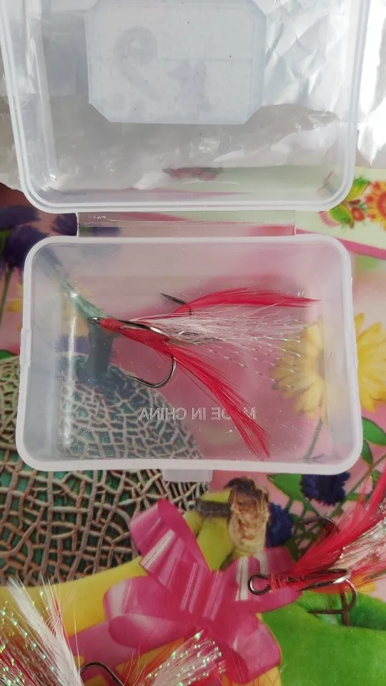 Заказывал тройники с перьями, прислали простые тройники без перьев. Продавец предлагал заказать ещё раз у него чтобы он положил в посылку дополнительно крючки с перьями в подарок, я отказался, деньги вернули.