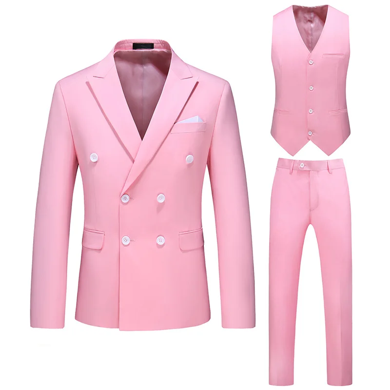 Новинка 2021 мужской костюм YASUGUOJI из 3 предметов двубортные облегающие повседневные смокинги на плоской подошве с вырезом на воротнике для свадьбы (Блейзер + брюки + жилет)