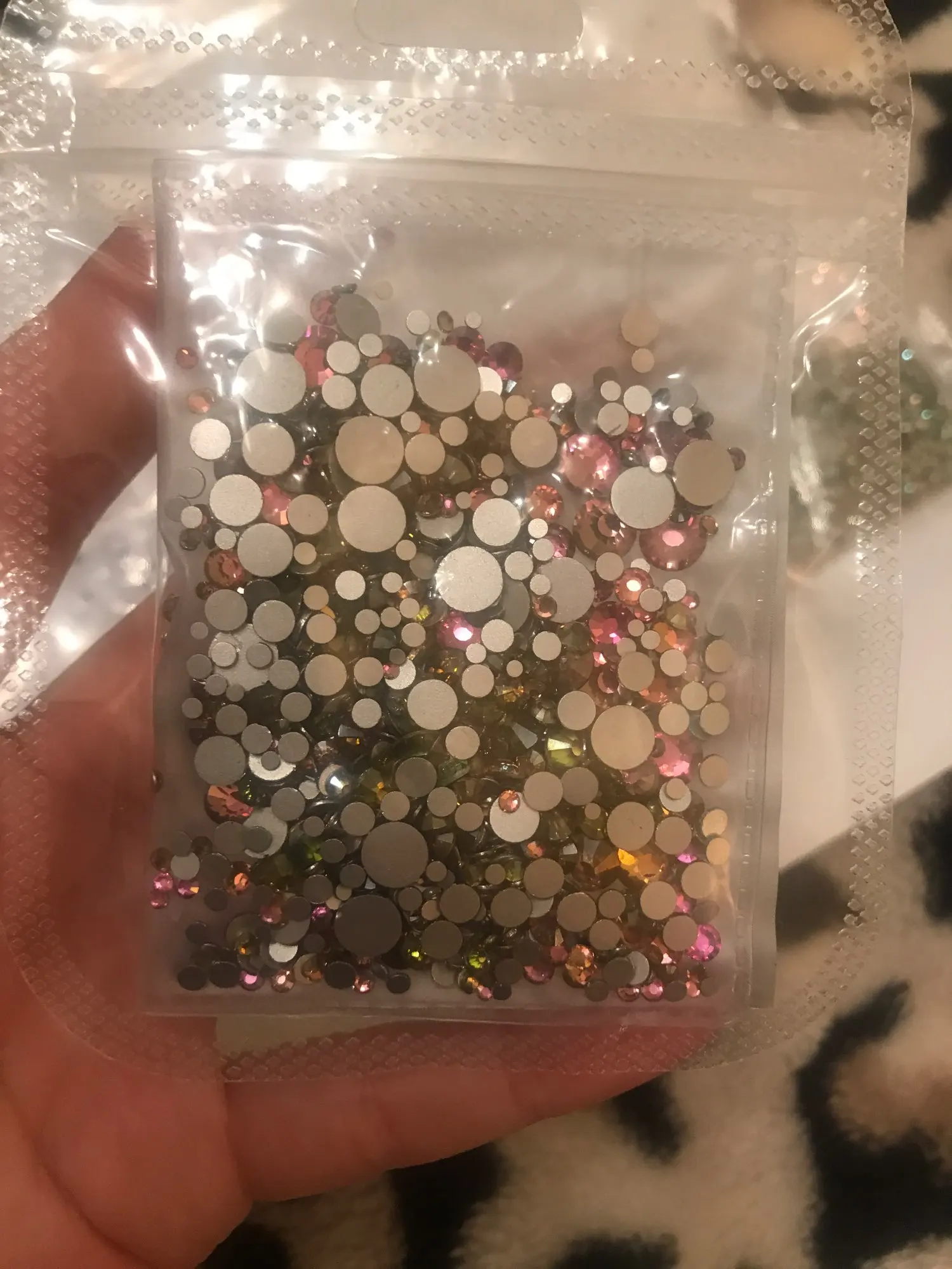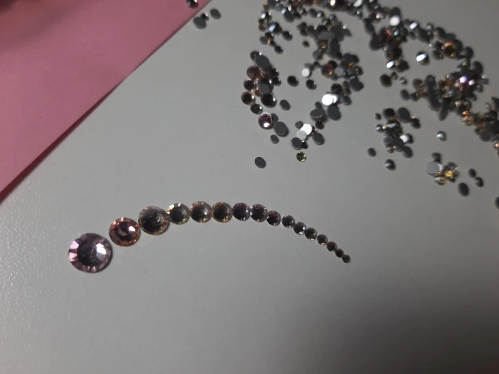 Цвет, как и хотела в размере ss30 и ss16, розово-сиреневый. В размере ss20 цвет ближе к розово-желтому. Ощущение,что другой пакетик положили. Качество хорошее, блестят хорошо. Понравилась упаковка. Доставка до СПб 15 дней. Буду заказывать ещё.