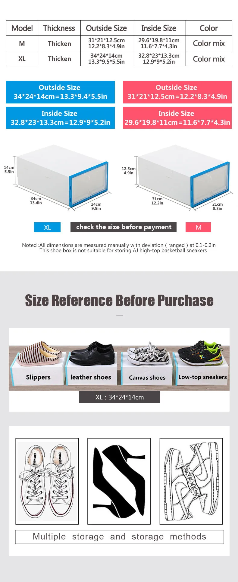 6 шт прозрачная коробка для обуви Пылезащитная коробка для хранения может быть наложена комбинация обувной шкаф раскладушка для мужчин и