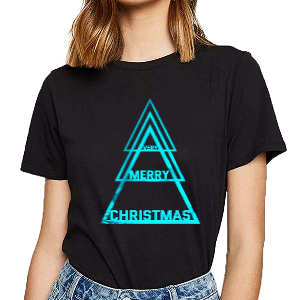 Топы Футболка Для женщин Счастливого Рождества неоновые комиксов надписи на заказ женская футболка