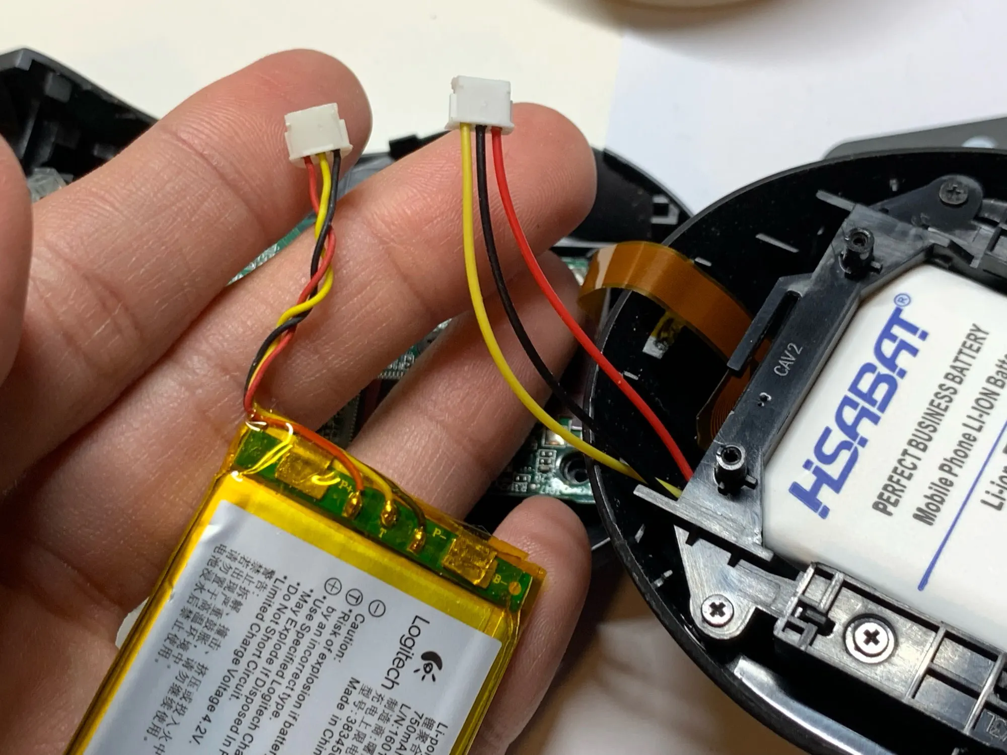 Отлично работает, но Проводка-это беспорядок. Оригинальный аккумулятор-красный, желтый, черный. Замена желтый, черный, красный. Поэтому я открываю его, чтобы увидеть проводку на печатной плате. Он также изменен. B + желтый, B-красный, а данные-черный. Так, работает как есть! Не заменяйте кабель на коннекторе!