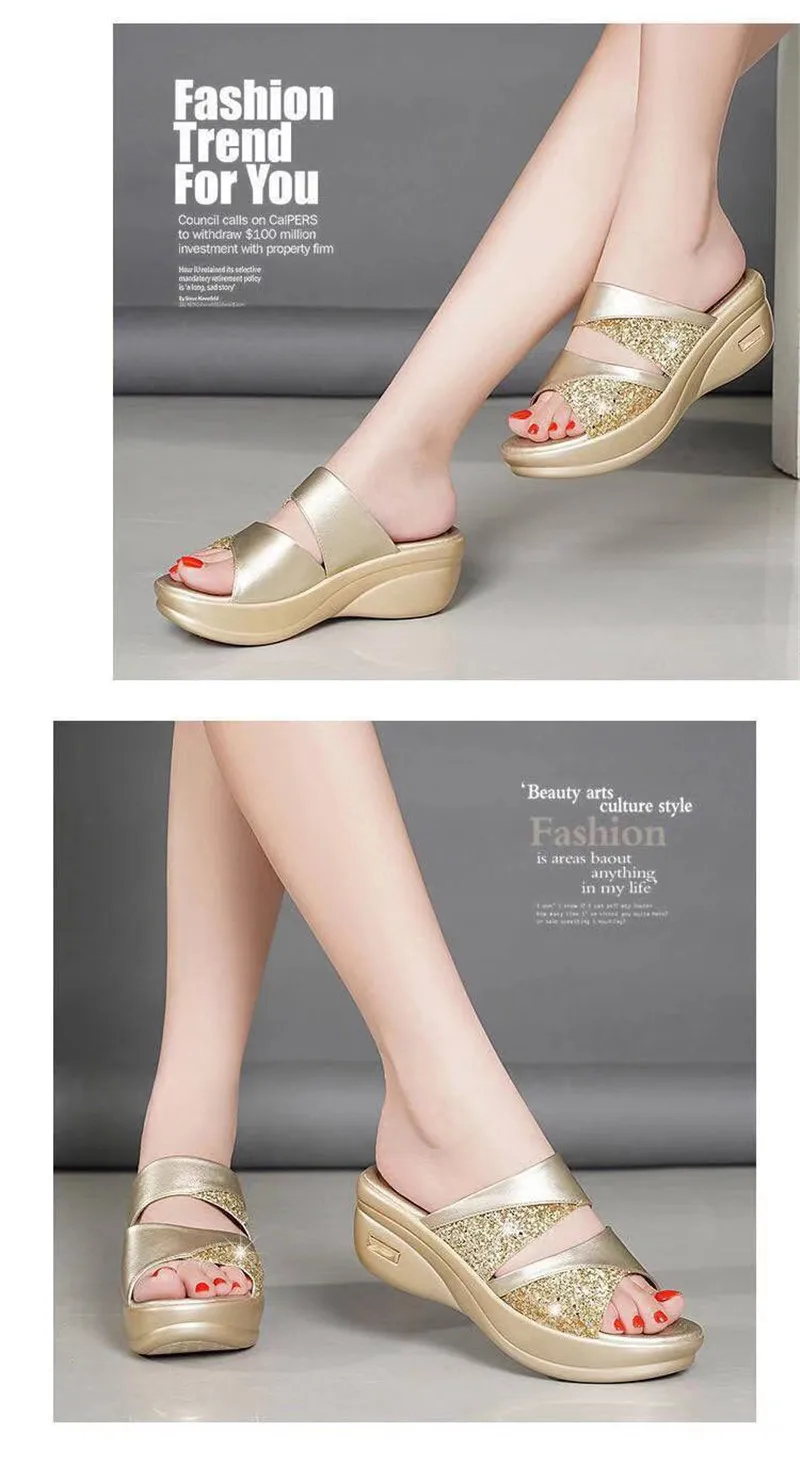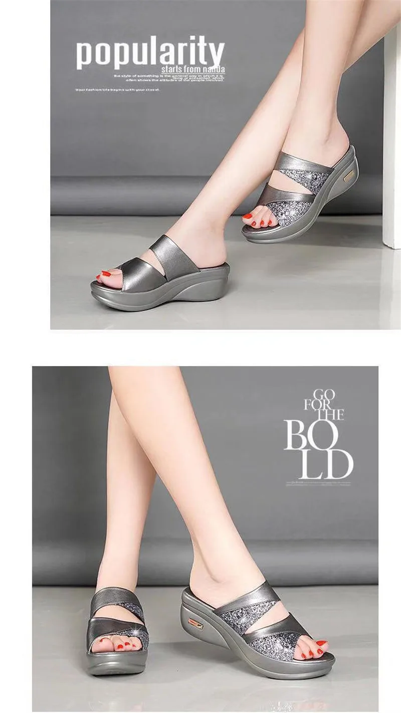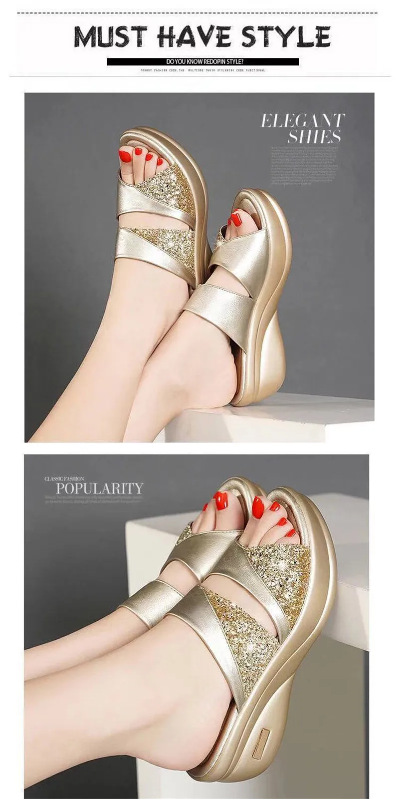 Тапки женские на платформе, повседневные сандалии на танкетке, открытый носок, смешанные цвета, пляжная обувь