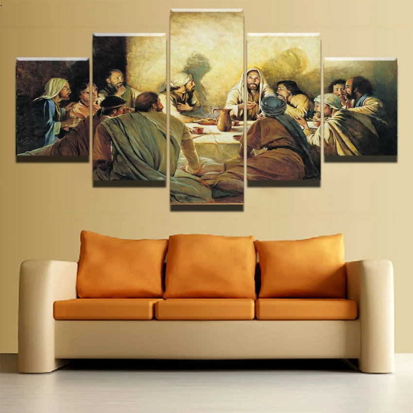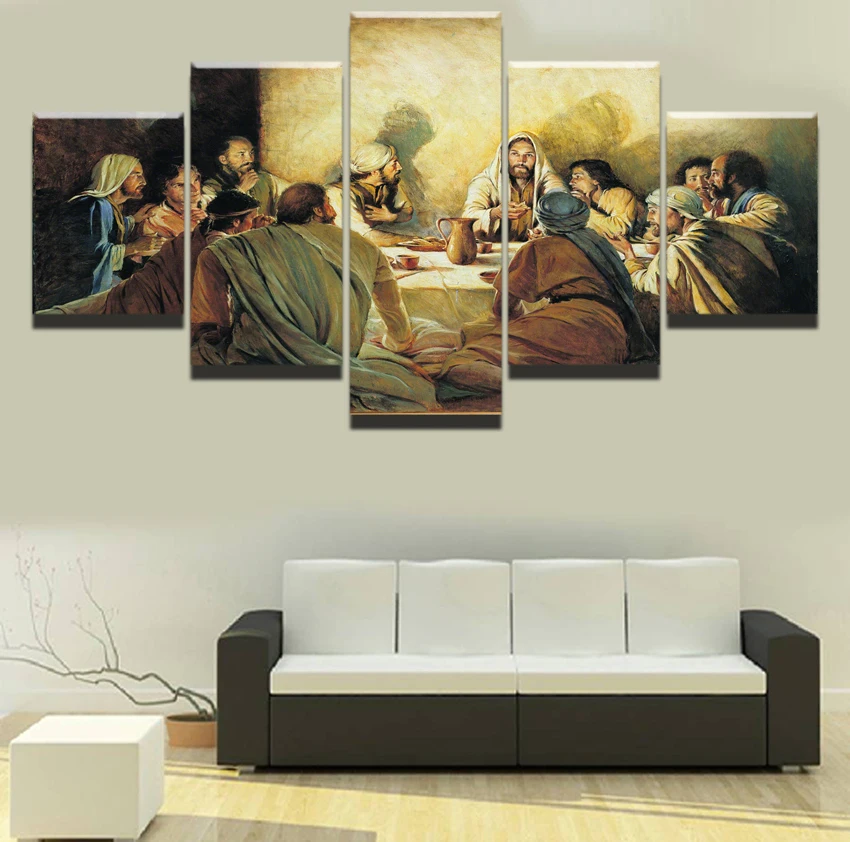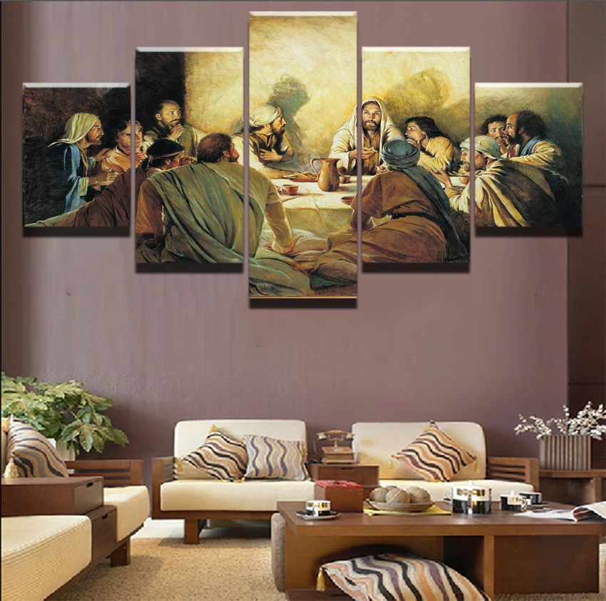 Модульная картина маслом Последний Ужин, 5 панелей, HD печать, плак...