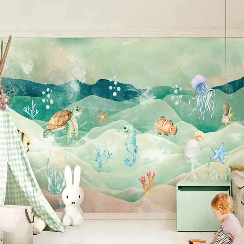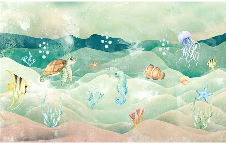 Фотообои Cutom в стиле ретро, цветные черепахи, дети, мультфильм, морские животные, дети, спальня, фон, Настенный декор, 3D наклейки
