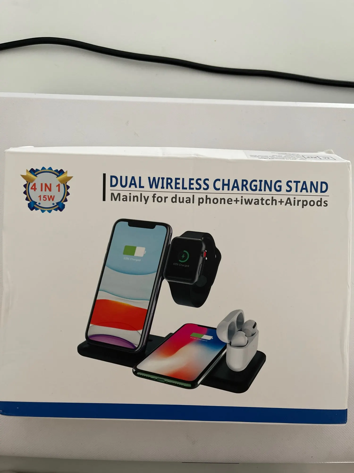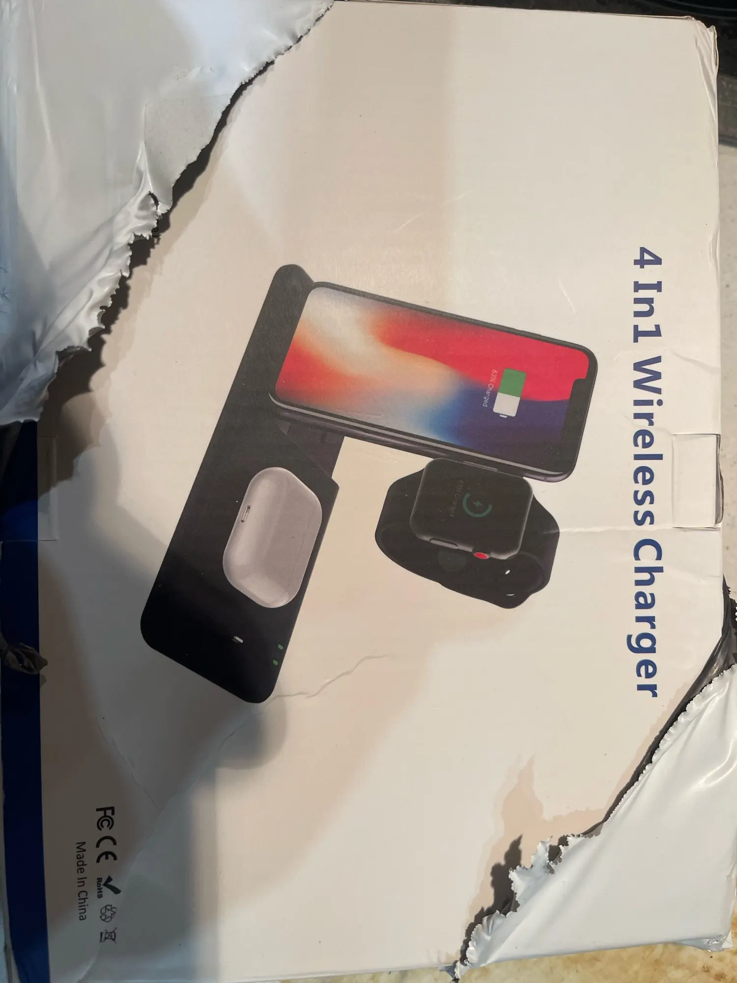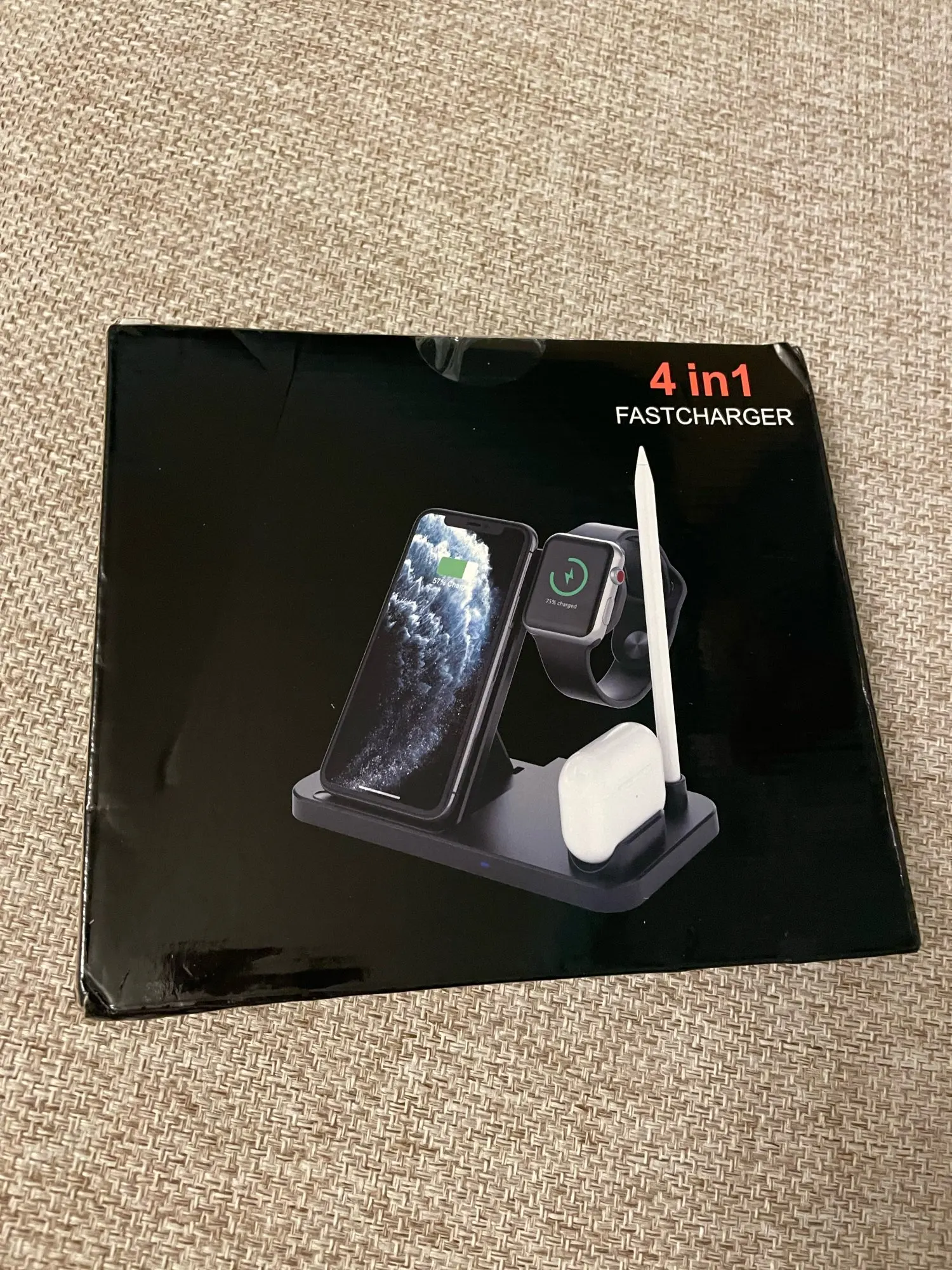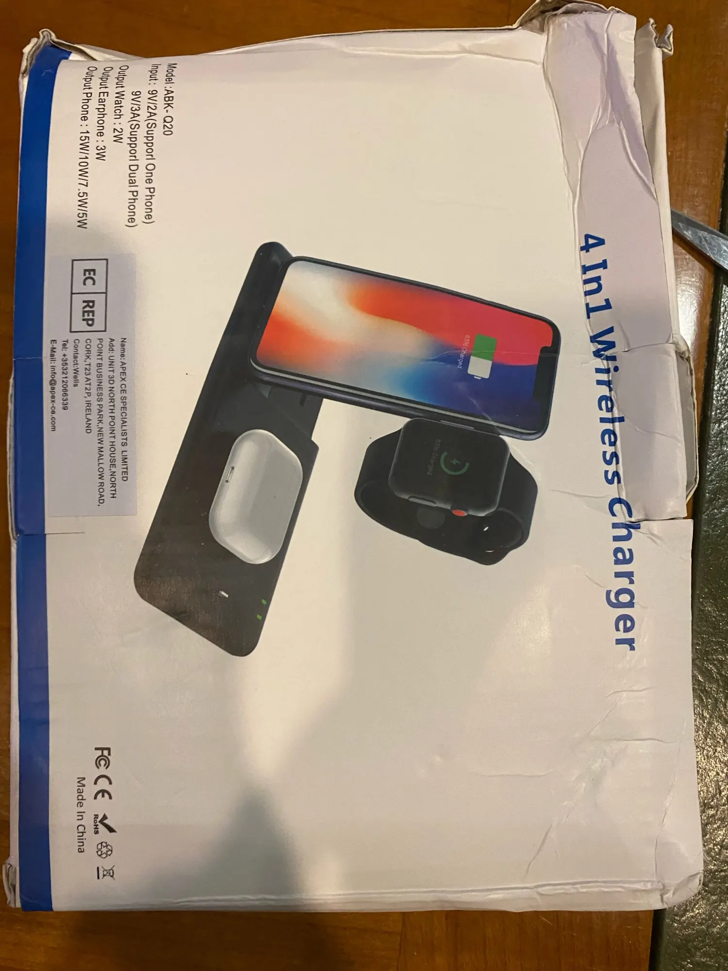 Заказ дошёл быстро. Доставили в отделение Почты России, а не в постомат, как было указано при заказе. Но так доже лучше получилось. Коробка пришла с замятием ( видно на фото), но станция в порядке. Проверил зарядку Air Pods и Apple Watch. Заряд идёт. Но часы держатся слабо. Магнит можно было и посильнее поставить. Беспроводную зарядку ещё не проверял.