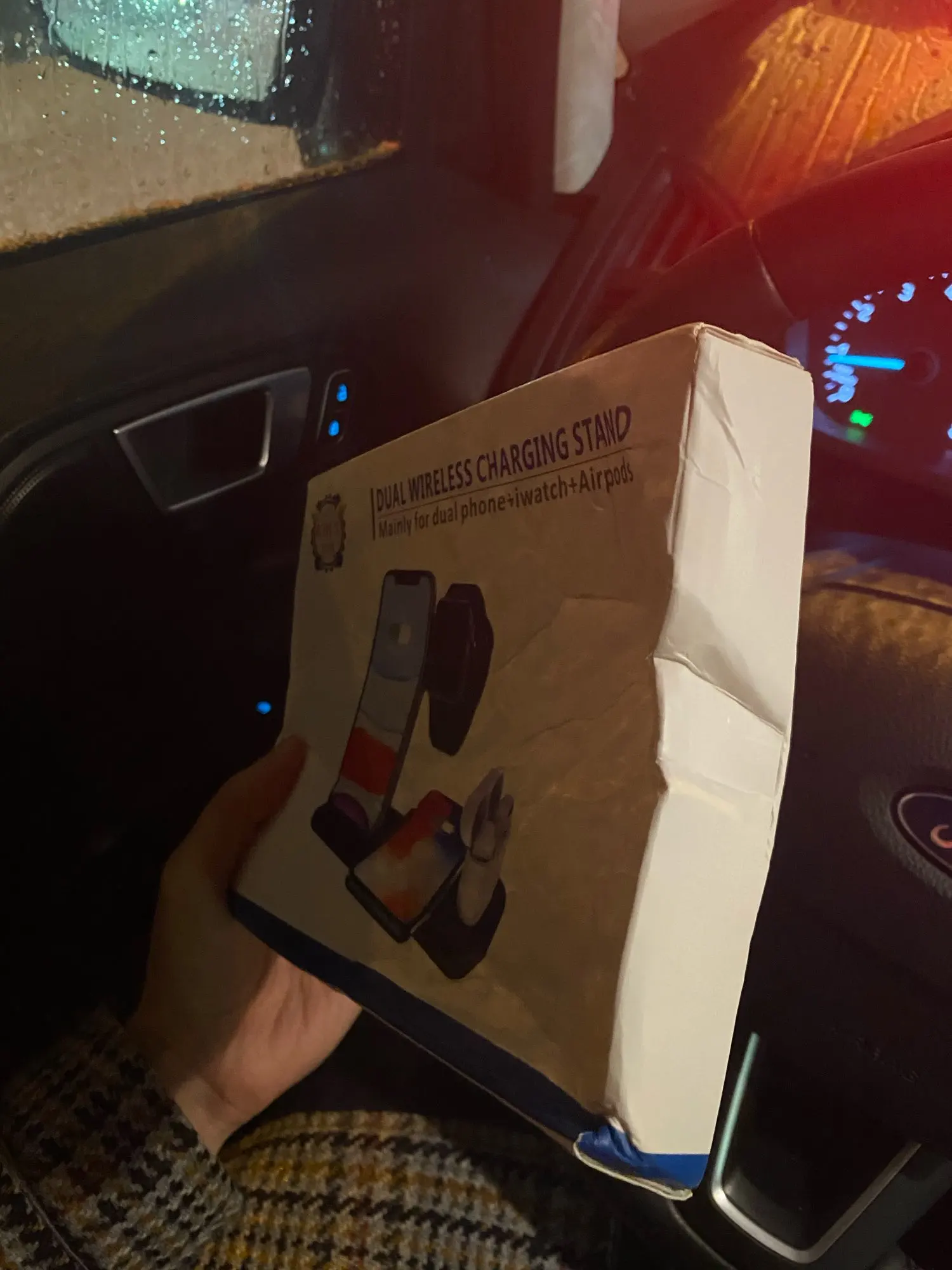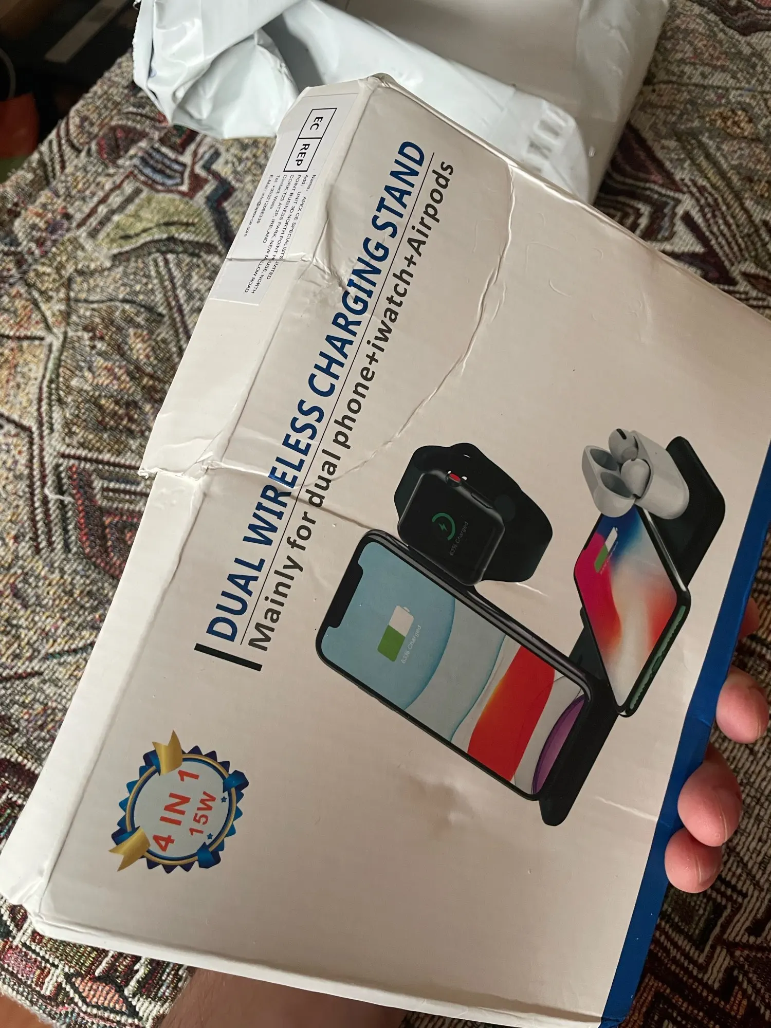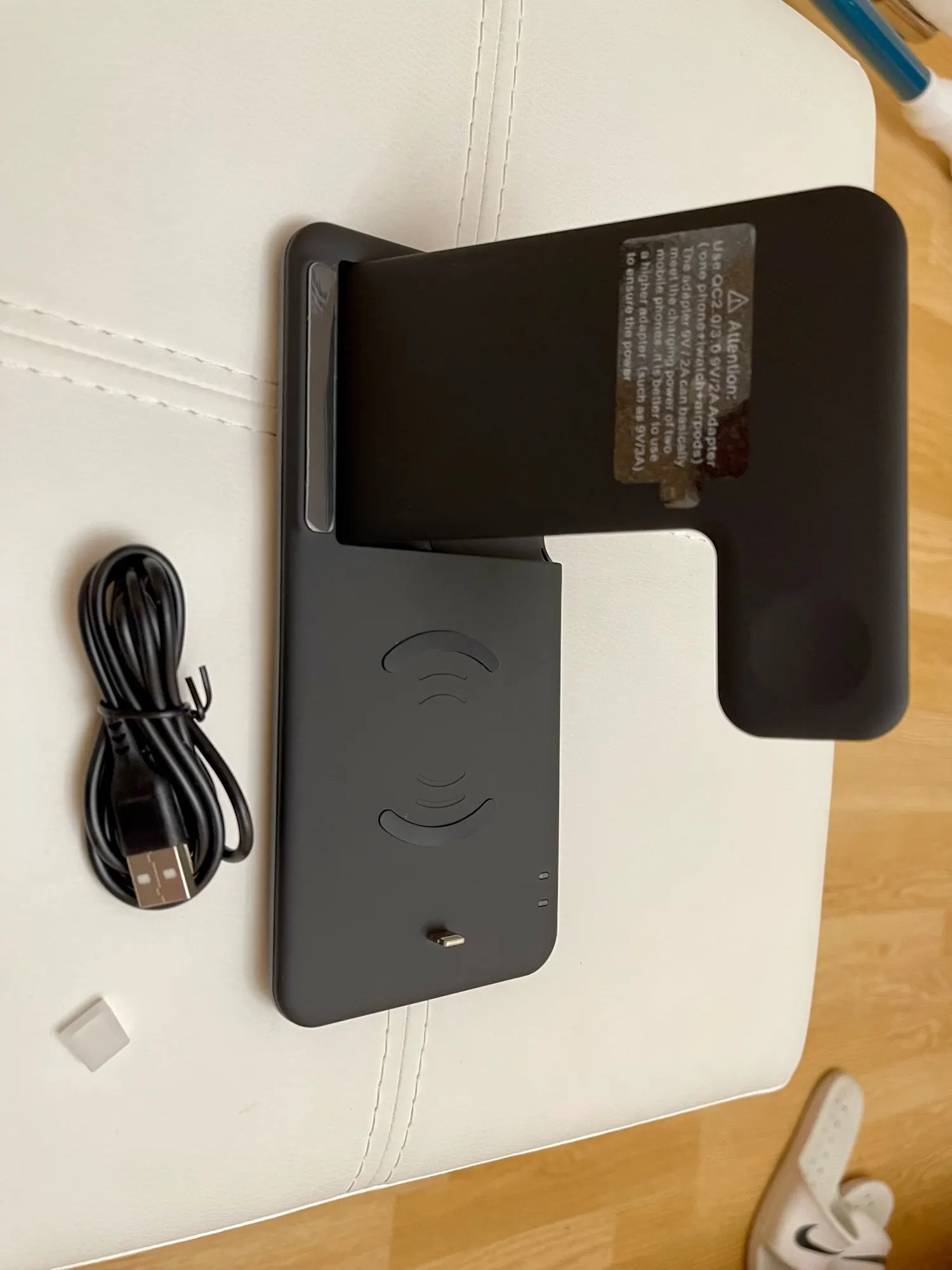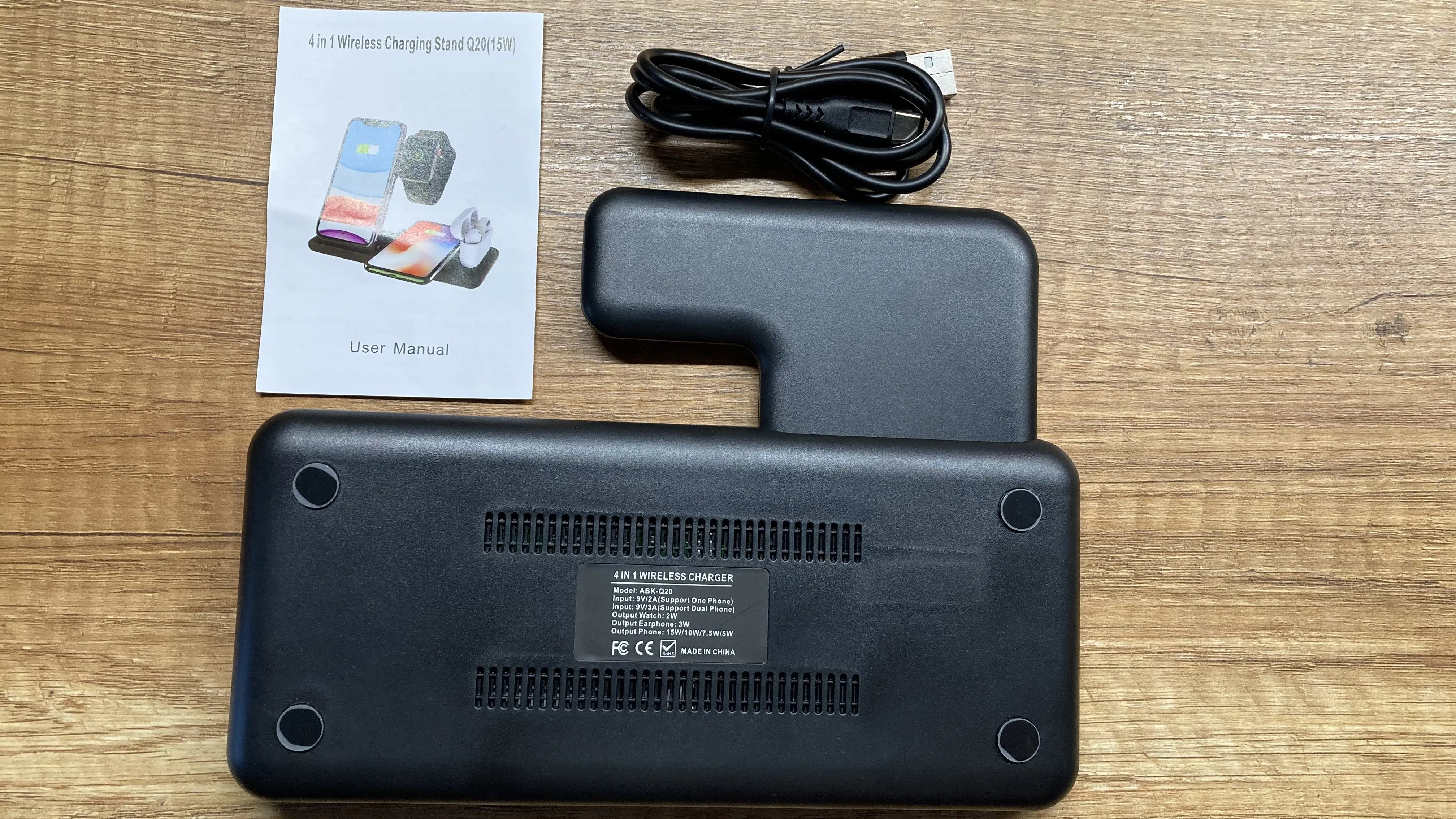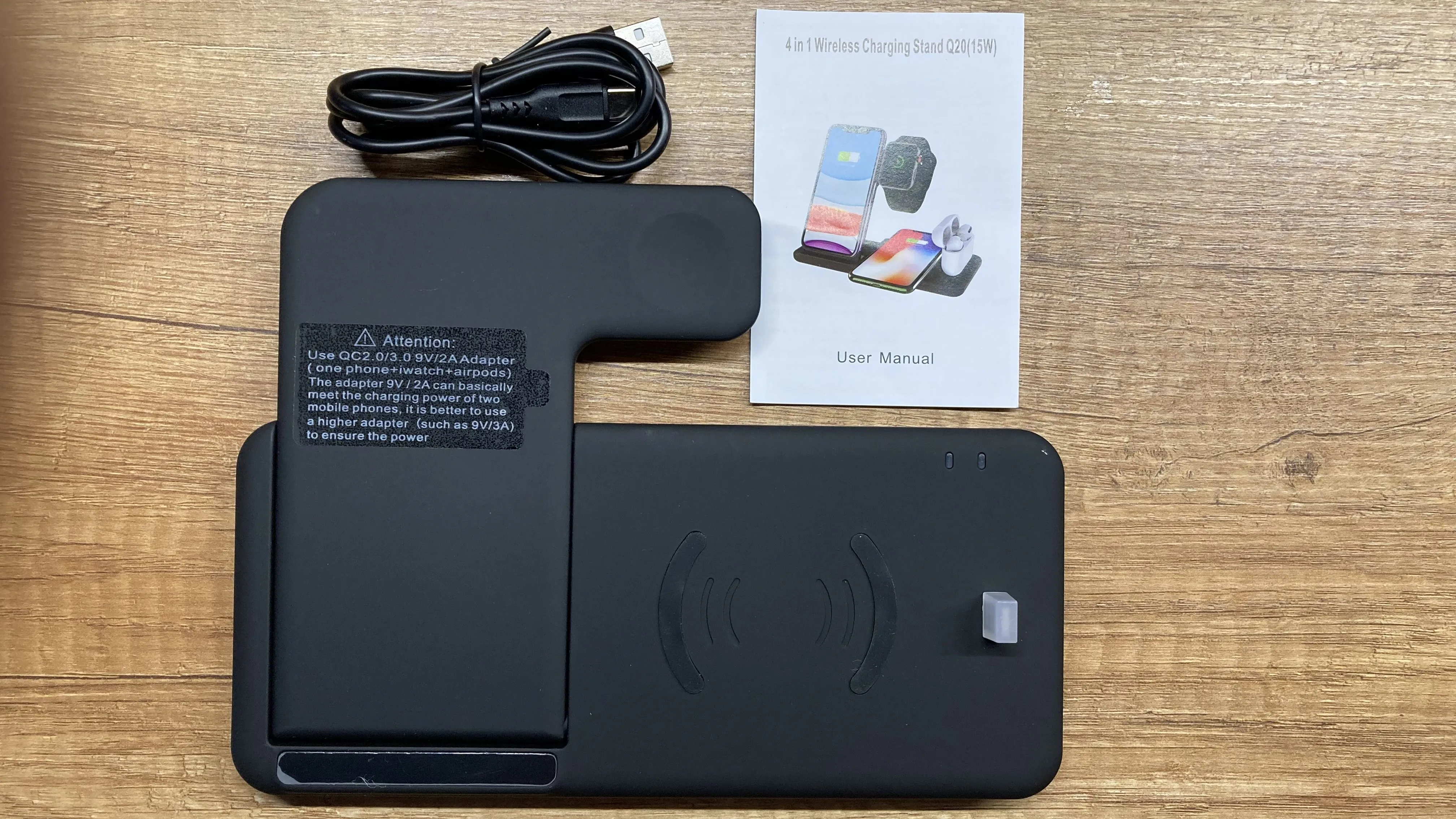 Заказ дошёл быстро. Доставили в отделение Почты России, а не в постомат, как было указано при заказе. Но так доже лучше получилось. Коробка пришла с замятием ( видно на фото), но станция в порядке. Проверил зарядку Air Pods и Apple Watch. Заряд идёт. Но часы держатся слабо. Магнит можно было и посильнее поставить. Беспроводную зарядку ещё не проверял.