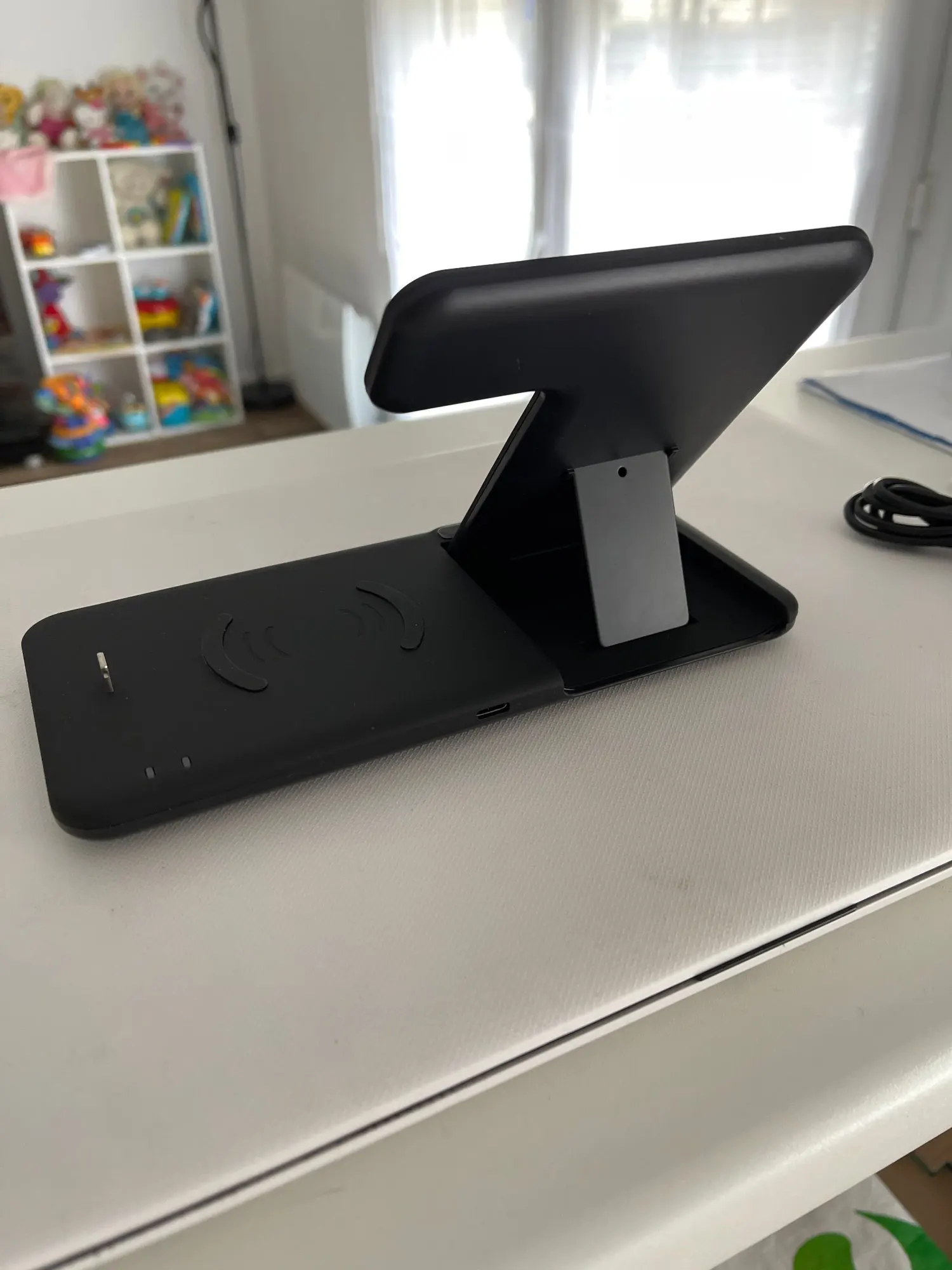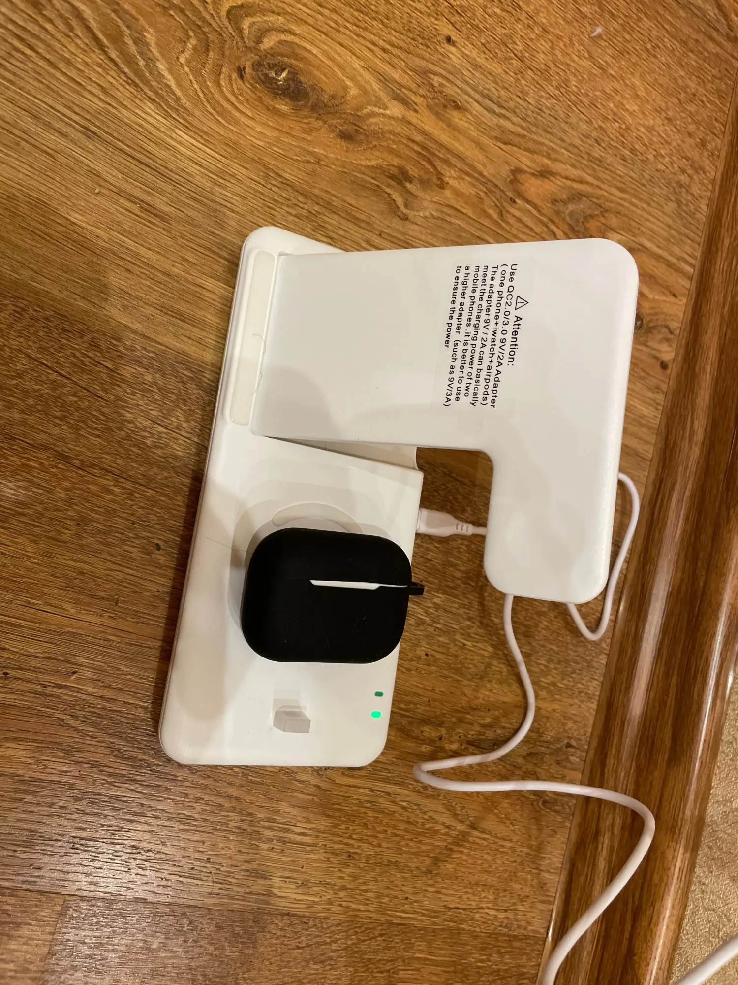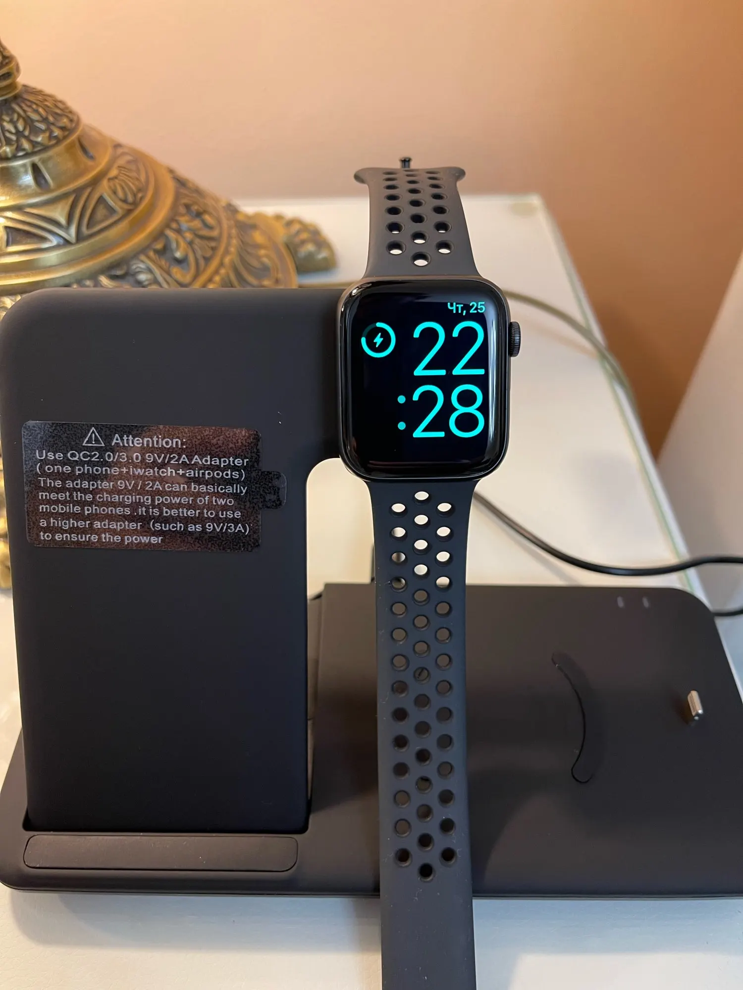 Заряжает одновременно телефон айфон 11 и эпл вотч 3, на вид хлипковата. Посмотрим сколько прослужит. Зарядка от юсб.