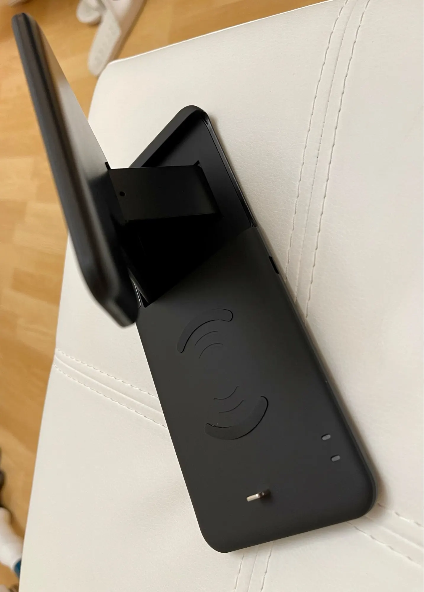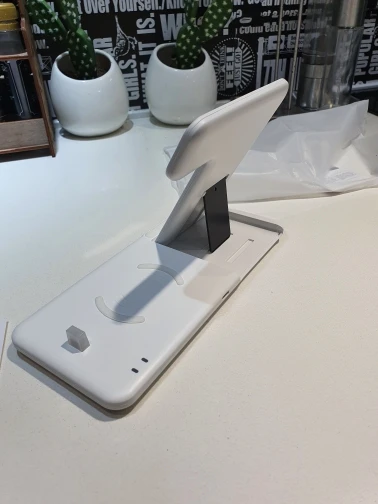 Отличная зарядка, сделано хорошо, задняя подставка металлическая и имеется магнит у основания что бы сразу примагничивалась в паз.