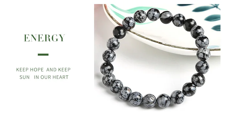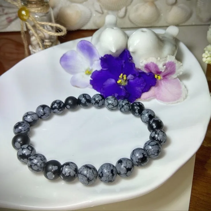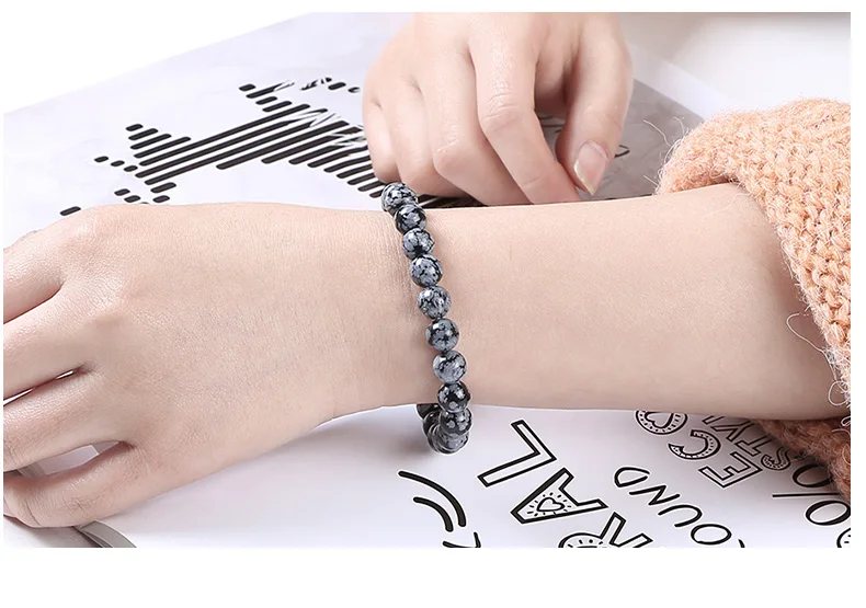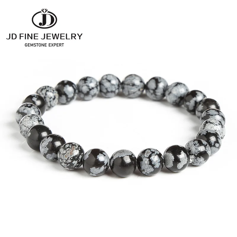 Эластичный браслет JD 4-12 мм, Круглые Гладкие бусины из натурального камня, снежинки, серый, черный цвет, стрейч-браслет, ювелирные изделия
