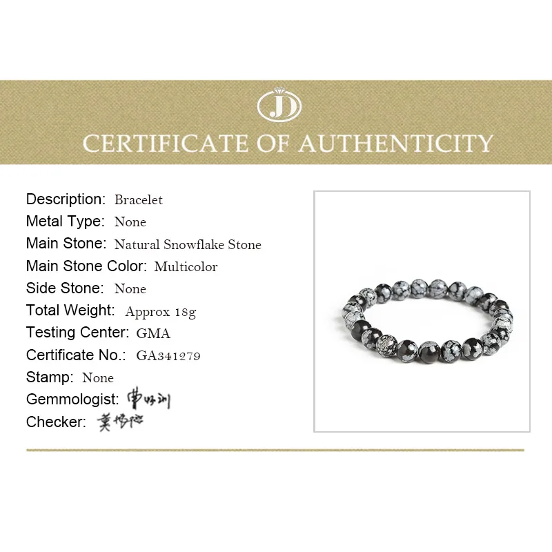 Очень красивый Снежинка камень ❅bracelet браслет! Рекомендовано. Заказ: 15 января 2021/Отправка: 20 января 2021/Доставка: 30 января 2021 Стандартная доставка AliExpress (Yanwen international express) Время доставки: 10 дней. Быстрая доставка. Товар был получен в хорошем состоянии и вовремя. Отличная защитная упаковка: двойная пузырчатая пленка. Снежинка камень браслет 8 мм-23 бусины, 18 гр. Соответствует указанному описанию. Коммерческое Качество: 6 бракованных бусин с заметной поверхностью и одним чипом. Продукт оправдал ожидания. Идеальное общение, быстрый ответ. Хорошая сделка. Я снова куплю в ювелирном магазине JD Gemstone Factory Store. Приятно иметь дело с отзывчивым и вежливым продавцом. Я ценю ваш прекрасный подарок. Это было очень мило с вашей стороны. Спасибо.♡С наилучшими пожеланиями и с Новым годом!