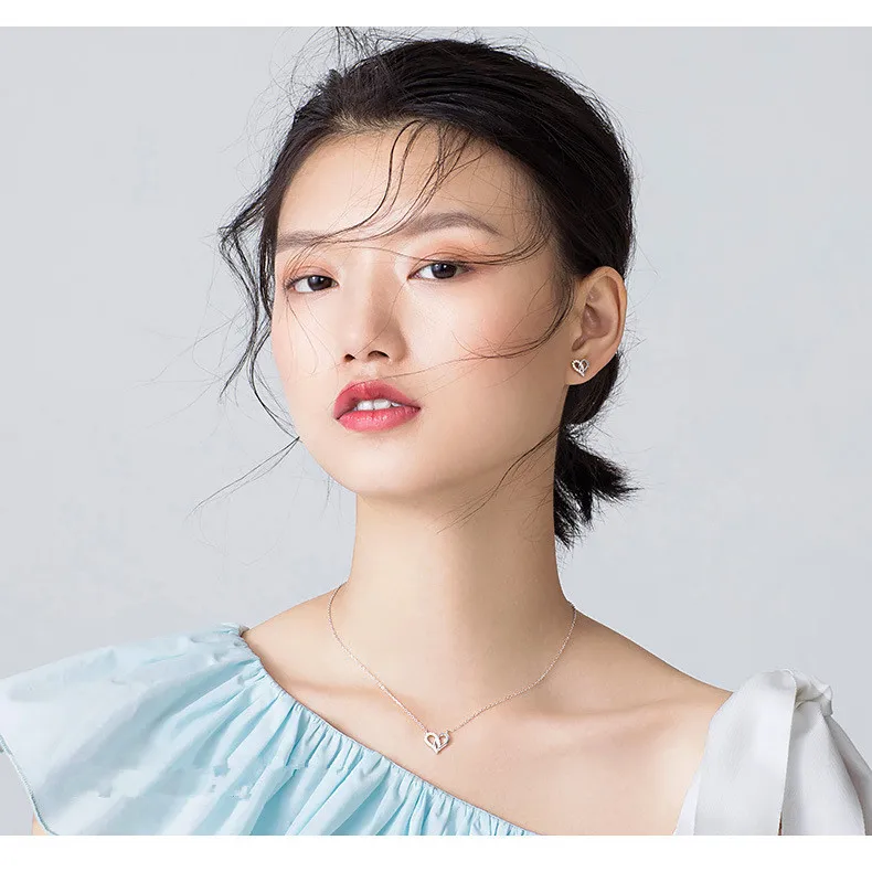 Короткое ожерелье OBEAR для девочек и женщин, корейское простое посеребренное ожерелье с полым кубическим цирконием и сердцем