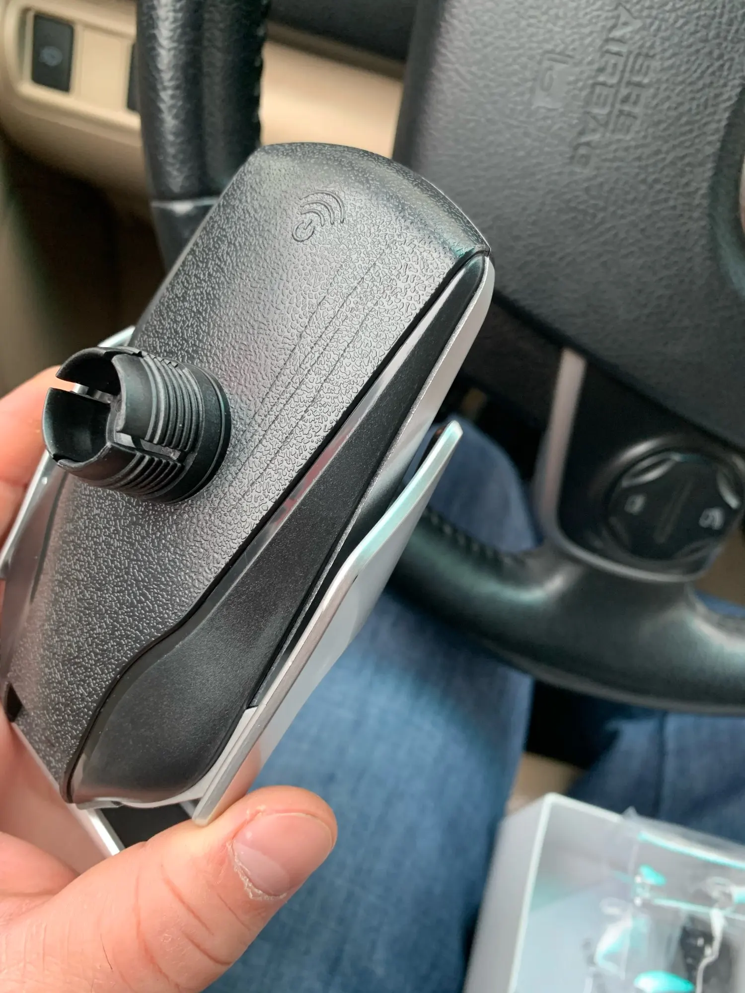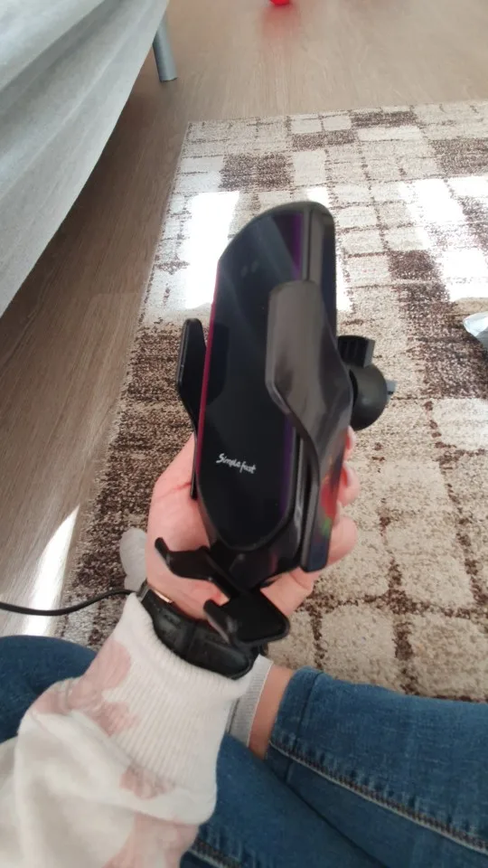 Продукт соответствует описанию и хорошо работает. Зажим хороший и имеет сильное сцепление с вентиляционной решеткой приборной панели. При включении питания автомобильного аксессуара зажимный механизм автоматически открывается и закроется с 3 - 5 секунд. Если вы слишком поздно, просто нажмите на заднюю сторону держателя телефона, и он будет открываться снова. После того, как вы поместите телефон в держатель, он начнет беспроводную зарядку вашего телефона. (Только если ваш телефон принимает беспроводную зарядку). Пока очень доволен своей покупкой.