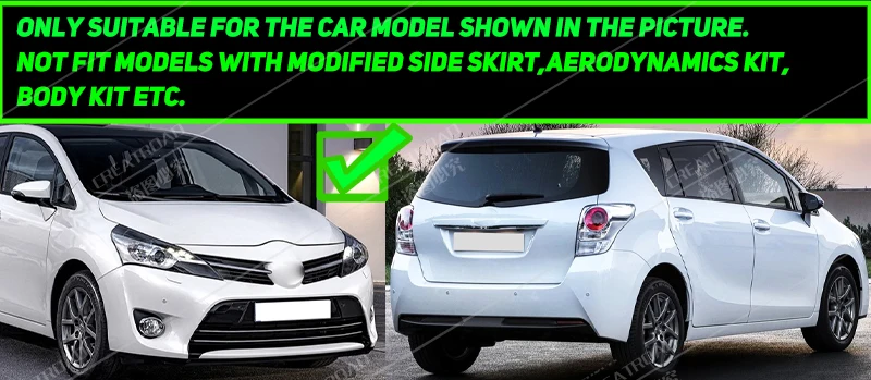 Фитинг: для Toyota Verso 2009-2018 (сравните с показанной моделью автомобиля)Не совместим с комплектом аэродинамики, боковыми юбками, комплектом для тела и т. д.