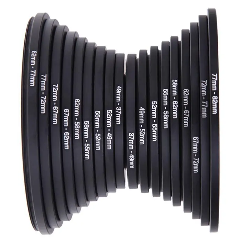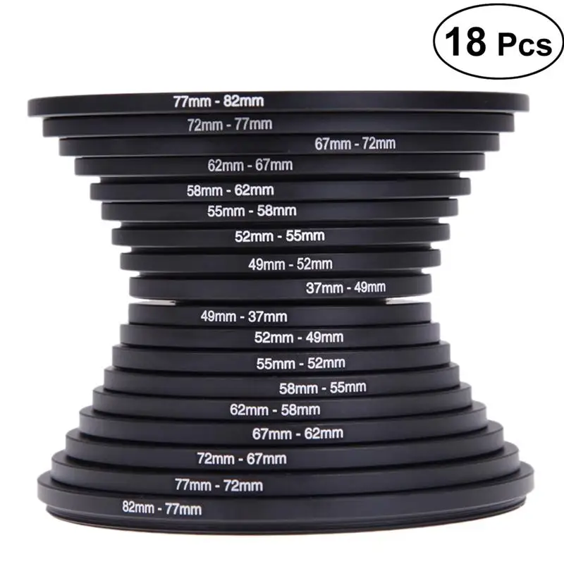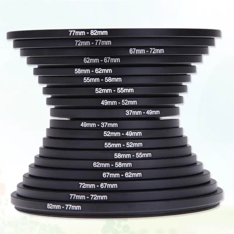 18 шт.компл. фильтр для объектива камеры из алюминиевого сплава, повышающее кольцо адаптер 37-82 мм 82-37 мм для цифровых зеркальных камер Canon, Nikon, Sony
