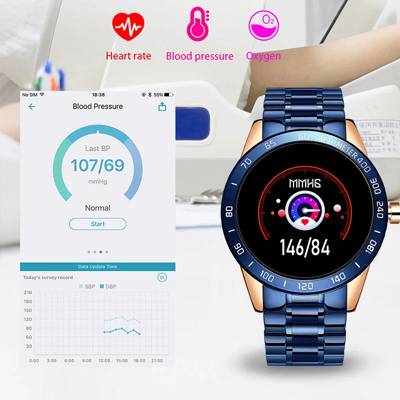 Смарт-часы мужские с пульсометром и тонометром, водонепроницаемые