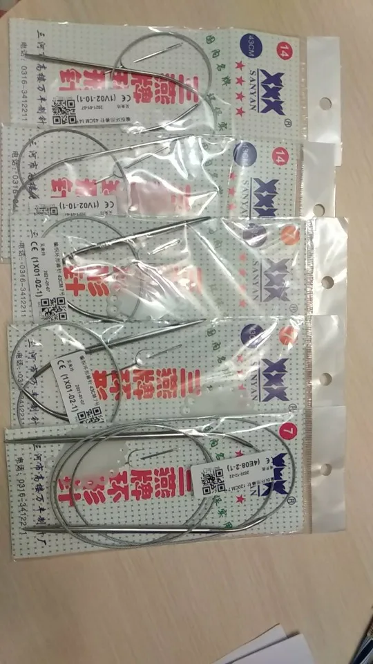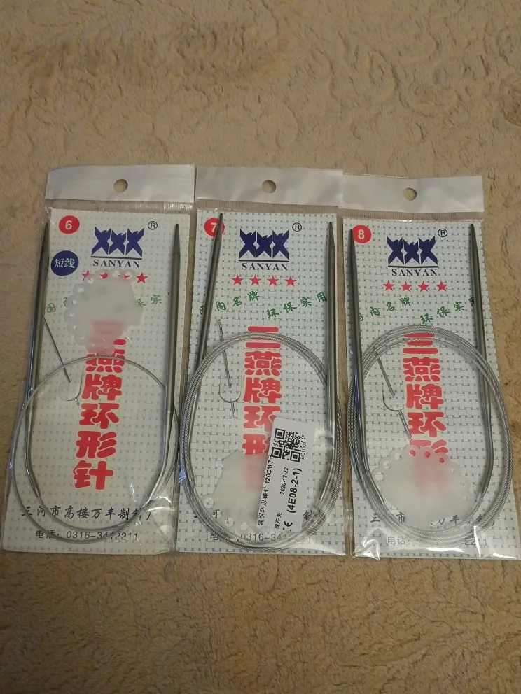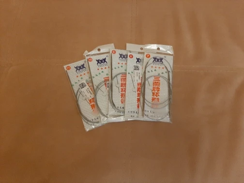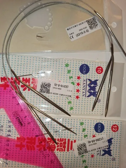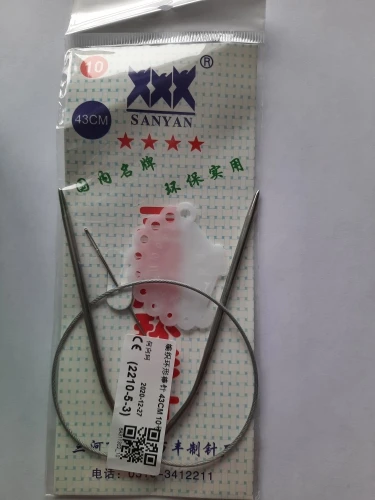 Отличные спицы. Качественные, при вязании не цепляю. пряжа ходит легко. Стыки перехода от спицы к шнуру хорошо запаяны. Ровно 120 см. как и указано. Только имейте ввиду, спицы немного, примерно на 0,25 меньше наших. В каждом наборе есть игла для сшивания и маркер для измерения размера