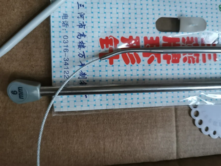 Спицы не плохие, острые на концах, кончики чуток разные по диаметру, тросик держиться крепко, вязать удобно, в комплекте игла и трафарет для определения размера спиц. Трек не отслеживается, доставка чуть больше месяца, покупала за 56 рублей