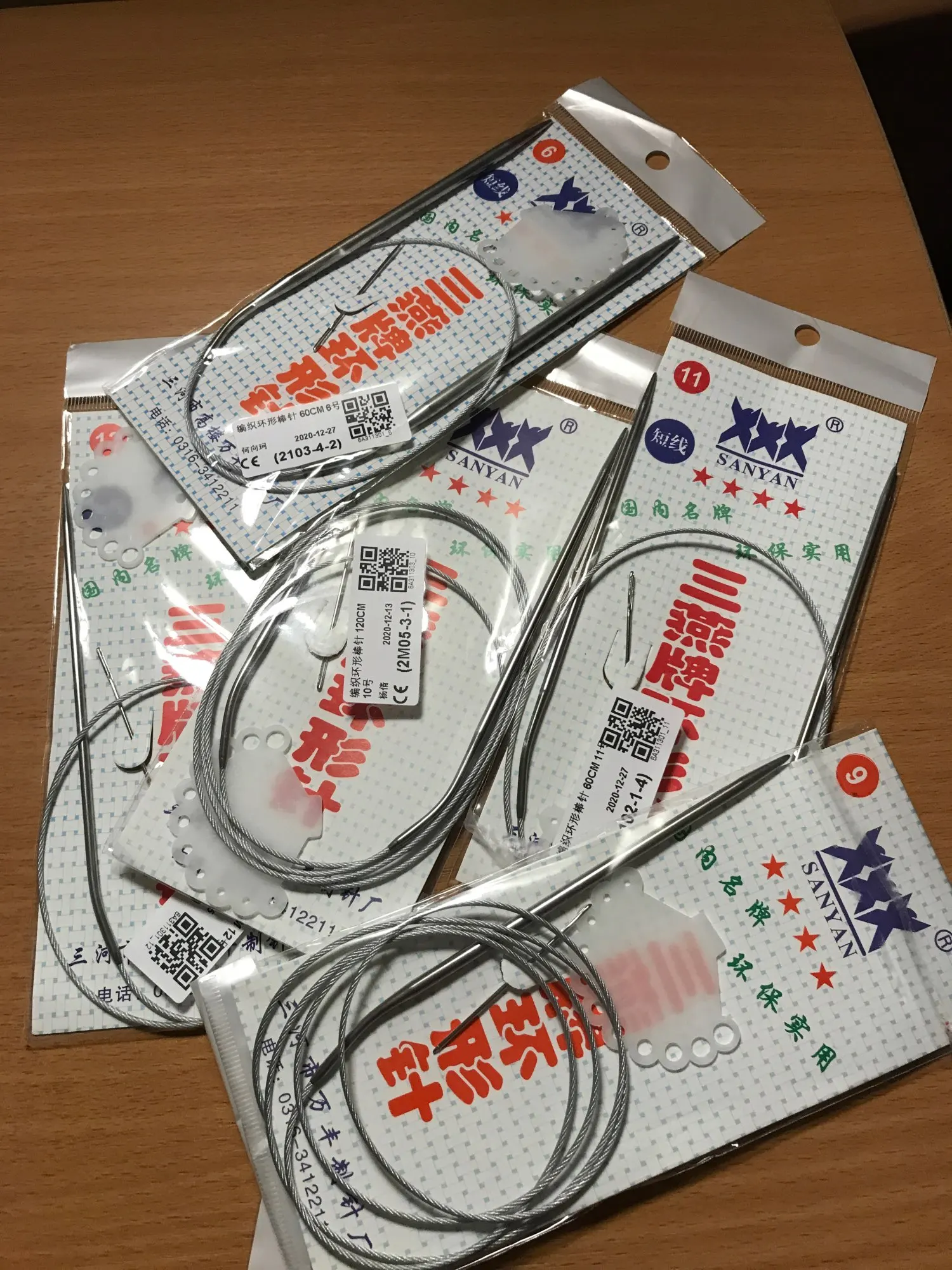 Спицы качественные, тросик не цепляется за пряжу. Продавец отправил товар сразу. Рекомендую.