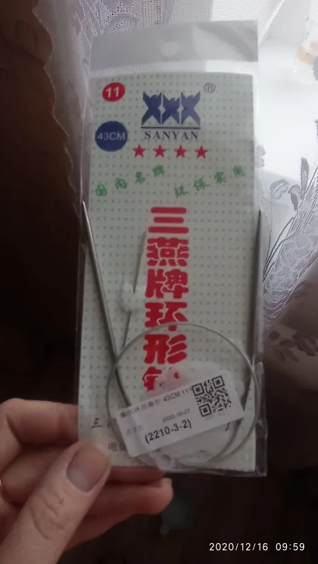 Взяла на пробу.Провязала несколько рядов 7 петель, нормально. Особо сравнить несчем, до этого не вязала на круговых спицах. Кончики в меру острые, длина от кончика до кончика 43 см. Шнур гладкий, место крепления к спице без изъянов. Продавец отправил товар в течение суток, до Омска пакет дошёл за 2 недели.