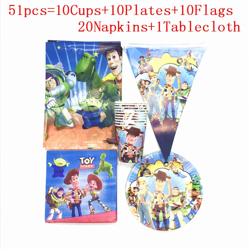 История игрушек мультфильма одноразовые стеклянные салфетки, баннеры, скатерть для детского дня рождения, украшения для вечеринки