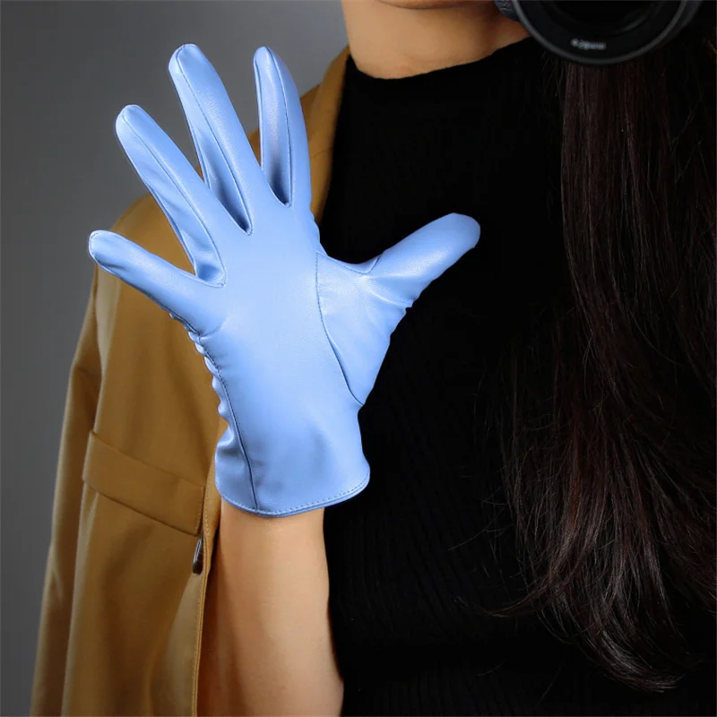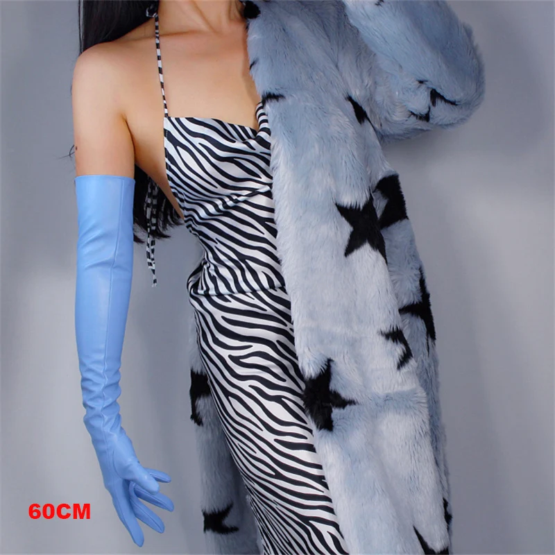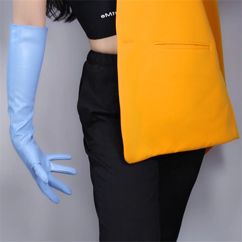 Длинные кожаные перчатки 50 см искусственная кожа светильник синий небесно-голубой большие рукава пышные рукава женские PUQLD-5
