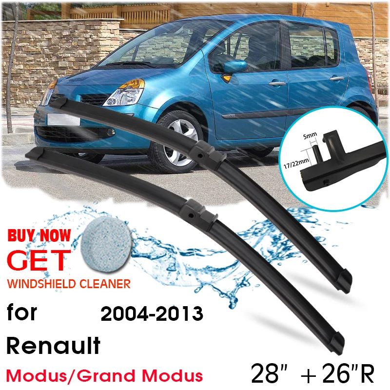 Модель автомобиля: Для Renault Modus/Grand Modus Год: 2004-2005 Размеры предложение: 28 "и 26" R Рычаги стеклоочистителя пополнения чернил: Натуральный каучук В наличии: Автомобиль оснащен боковыми штырьками