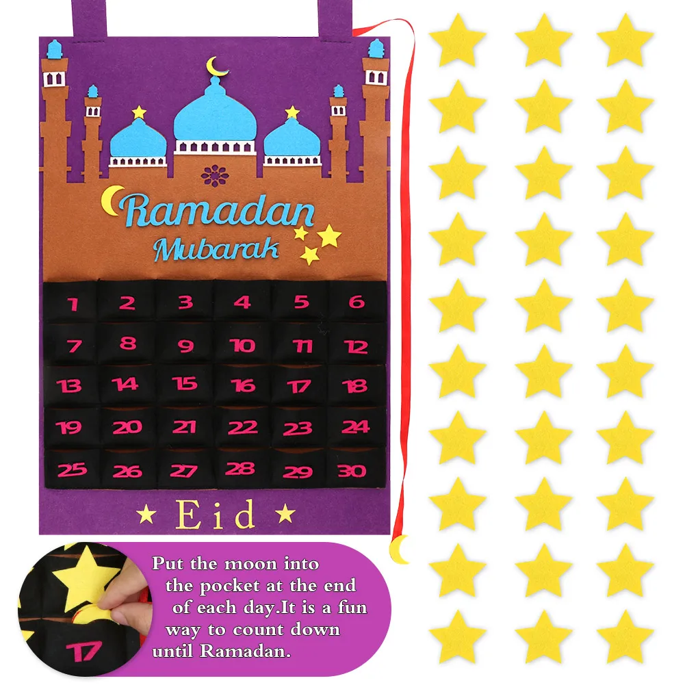 ❤[Применимые случаи]: Календарь ИД Мубарак, карманы могут быть заполнены небольшими закусками, небольшими подарками, небольшими конфетами, шоколадом, подвешенными на камине, лестнице, стене и т. д.