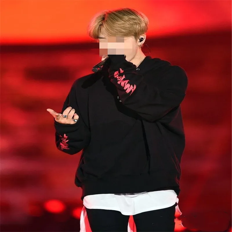 Bangtan Boys с капюшоном JIMIN концерт с одинаковыми мужчинами и женщинами капюшон свободный плюс бархатная поддержка