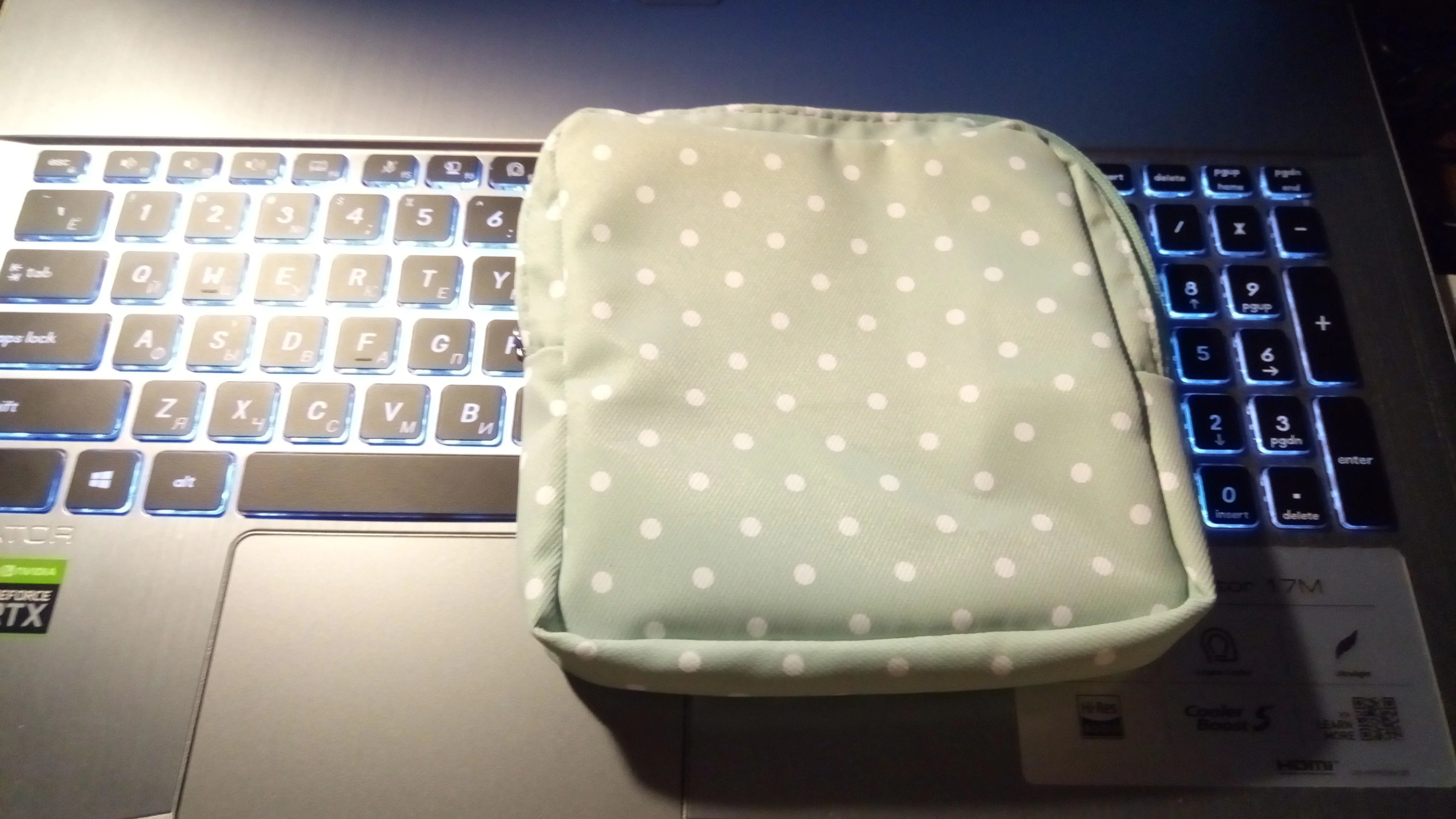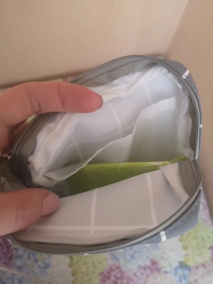 Посылка шла в Элисту 3 недели. Отличное качество. Можно Поместить до 5ти прокладок, если больше, то она будет выглядеть пузатой и плохо закрываться. 2 кармашка. Размером 13х13 см, в разложенном виде, соответственно, 26х13 см. На фото сумочка в 3мя прокладками и 3мя ежедневками Очень довольна качеством. Спасибо большое продавцу)))