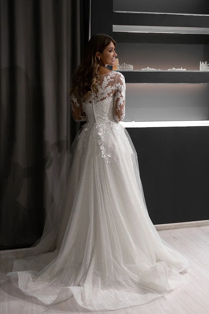 Женское свадебное платье с длинным рукавом Booma, ТРАПЕЦИЕВИДНОЕ св...