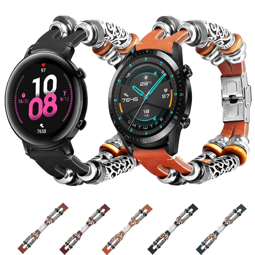 Для Huawei Watch GT 2 46 мм 42 мм GT2 ремешок из натуральной кожи 20 мм ремешок для часов в этническом стиле резной ретро браслет Ремешки для наручных часов