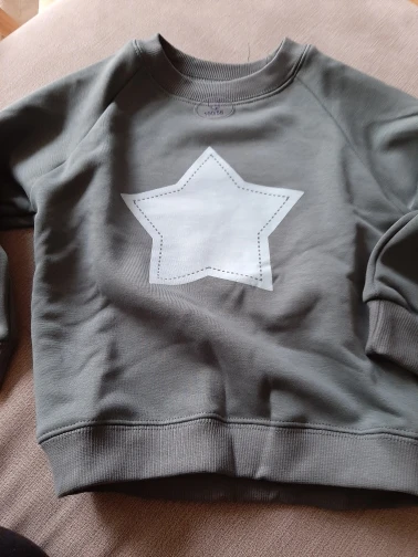 классный свитер. мягкий и теплый. брала 100 на рост 83 см.внутри как небольшой мягкий ворс. есть запас, но небольшой. на это и рассчитывала. звезда нарисована краской. после стирке не трескается. советую к покупке.я довольна.