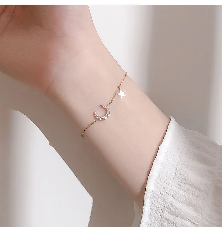 OBEAR посеребренный браслеты для подружки Цирконий Луна Звезда романтичный браслет женский подарок на день рождения